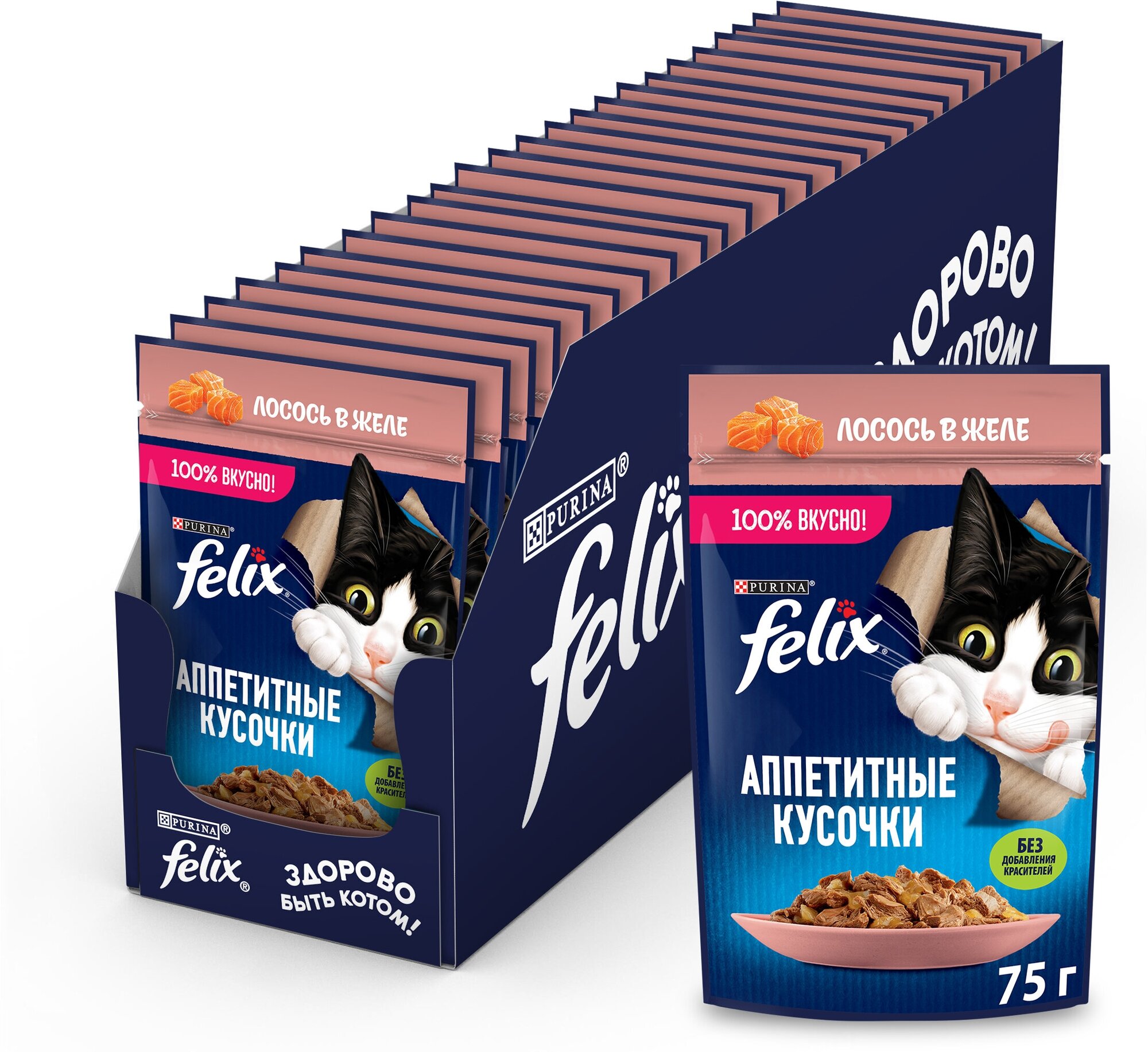 FELIX аппетитные кусочки для взрослых кошек с лососем в желе (75 гр х 26 шт)