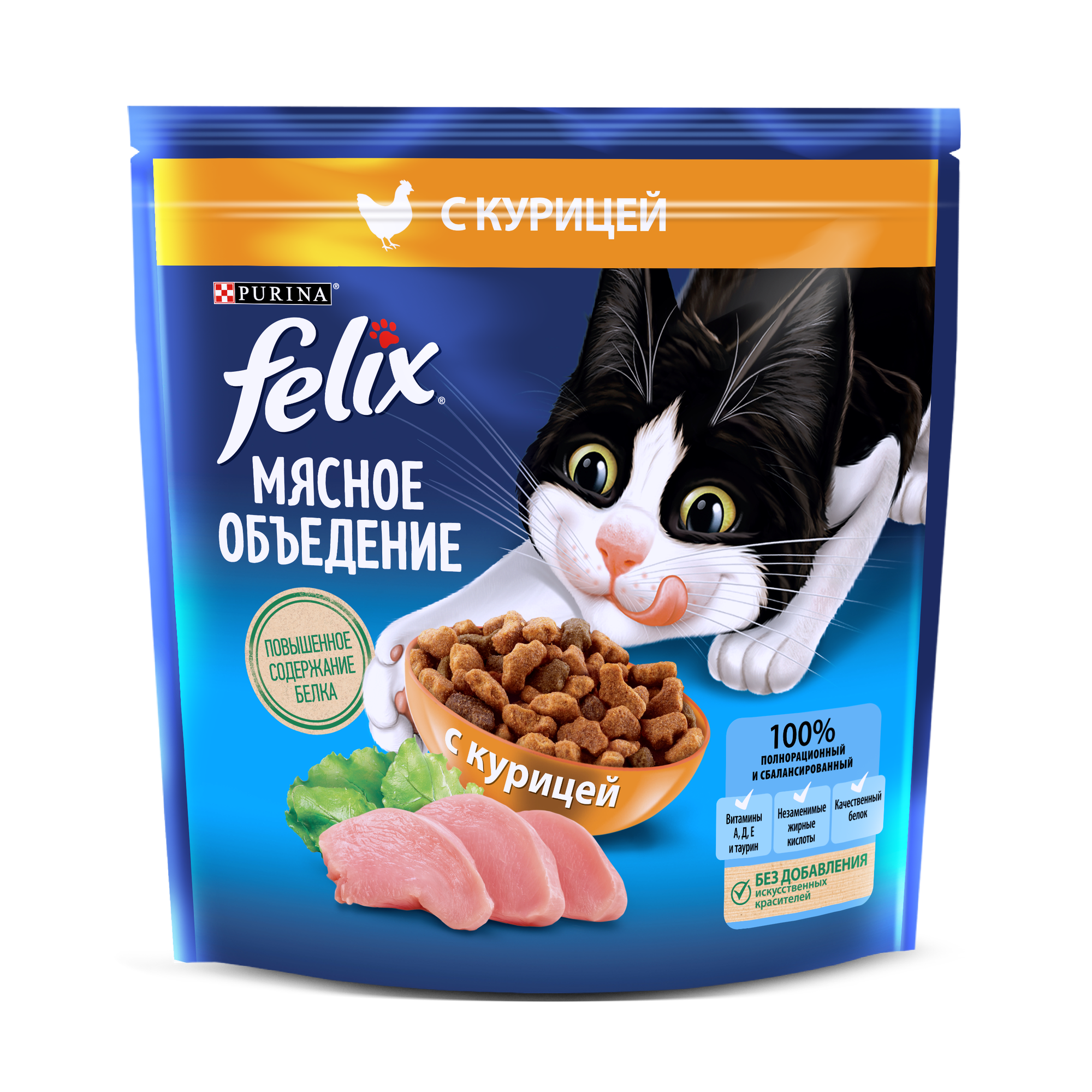 Сухой корм FELIX "Мясное объедение" для кошек, курица, 600 г