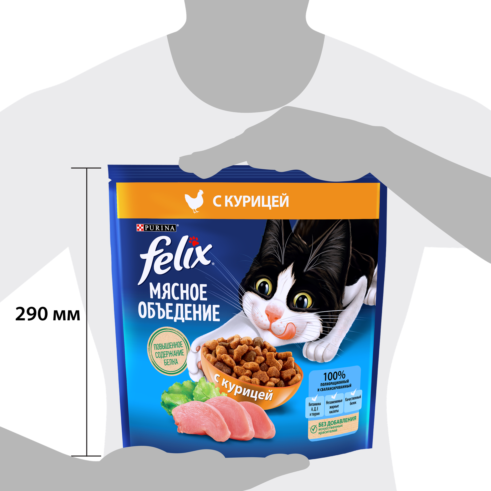 | Состав | злаки, экстракты растительного белка, мясо и мясные ингредиенты (включая курицу), животные жиры, продукты переработки растительного сырья, дрожжи, минеральные вещества, аминокислоты, консерванты, красители, витамины, антиоксиданты |