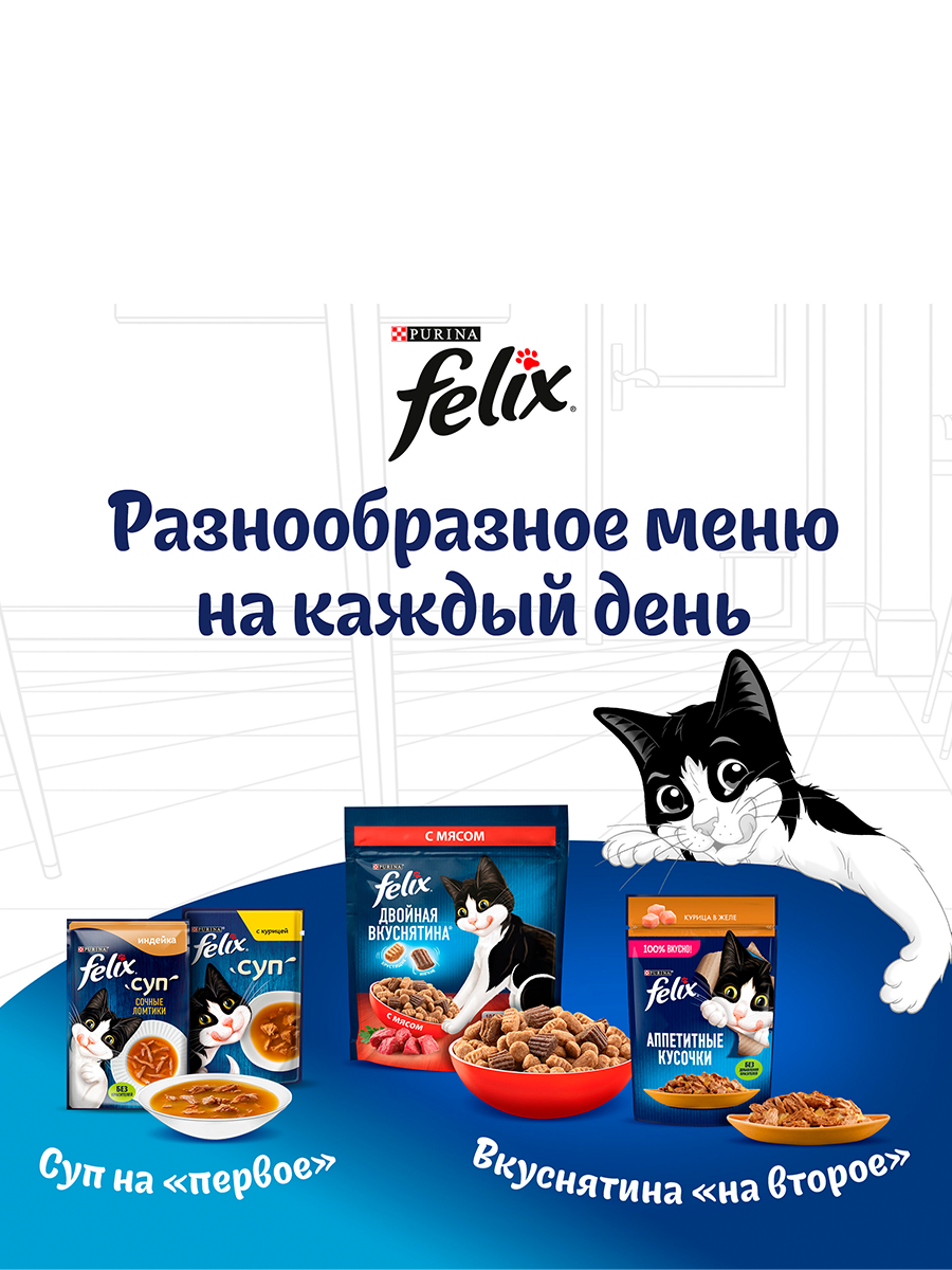 | Отзыв: | Недавно взяла котика. Он попробовал несколько кормов, и этот Феликс с курочкой понравился ему больше всех) |