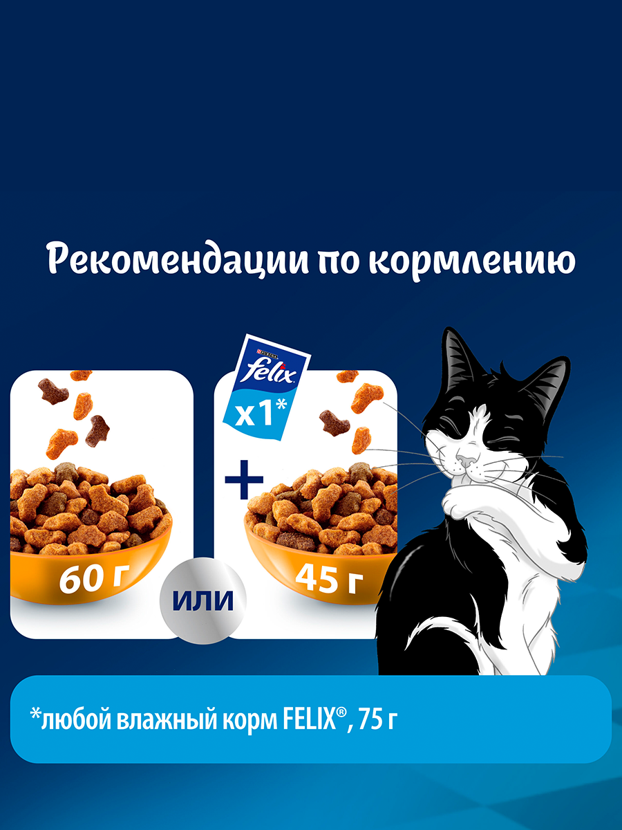 Корм для кошек сухой Felix / Феликс Мясное объедение для взрослых животных, гранулы с курицей 600г / кошачья еда для ежедневного кормления