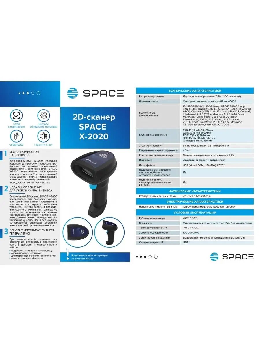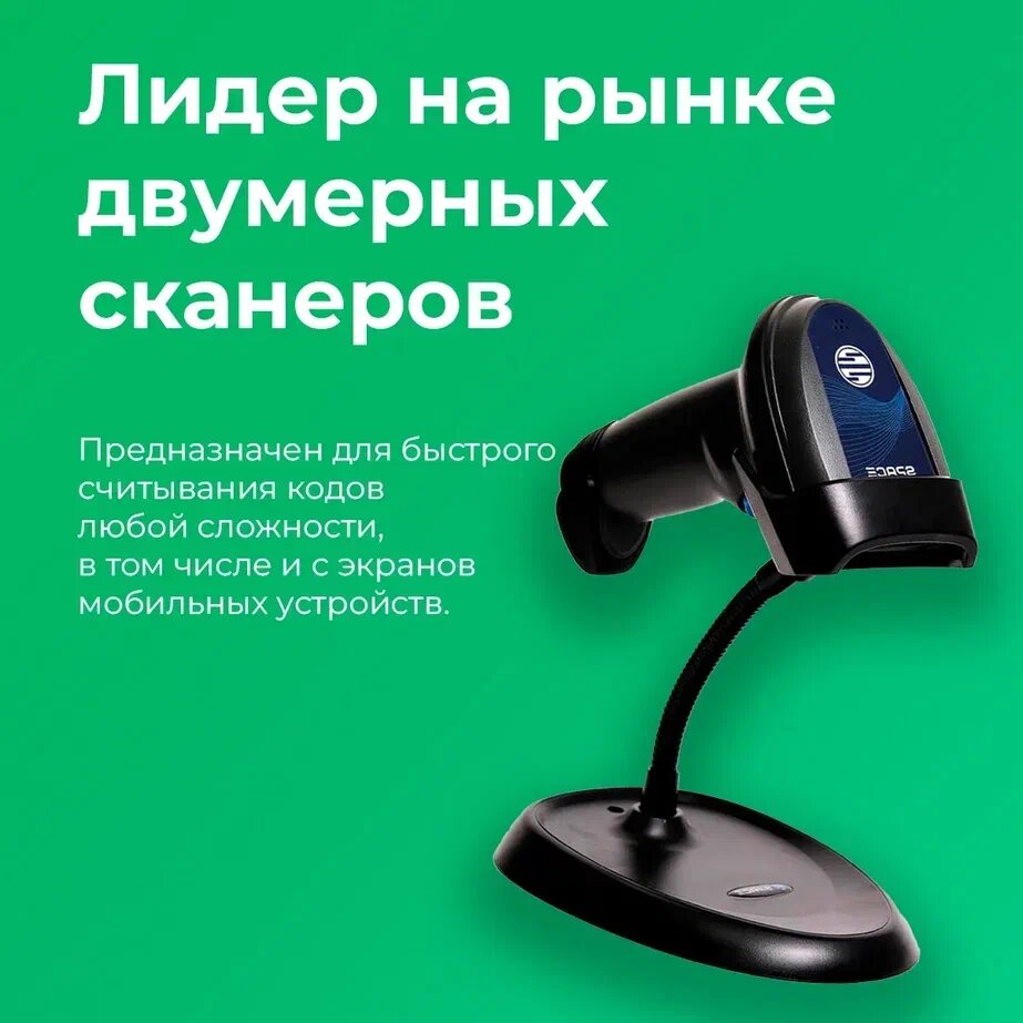 Сканер штрих-кода SPACE X-2020-2D-USB, черный, ручной, с подставкой в комплекте интересное: