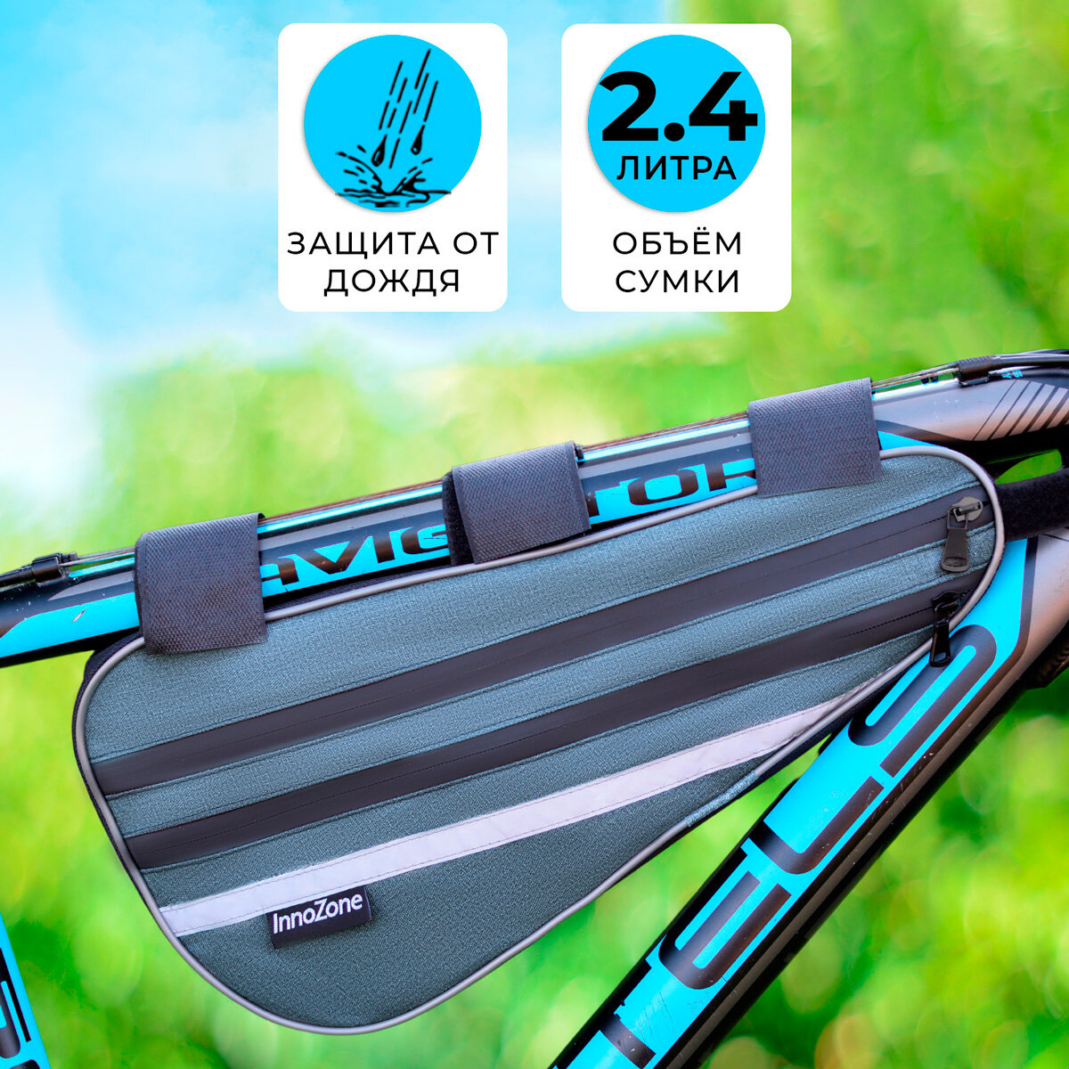 Сумка для велосипеда под раму 40х20х6см InnoZone U-Frame светло-серая интересное: