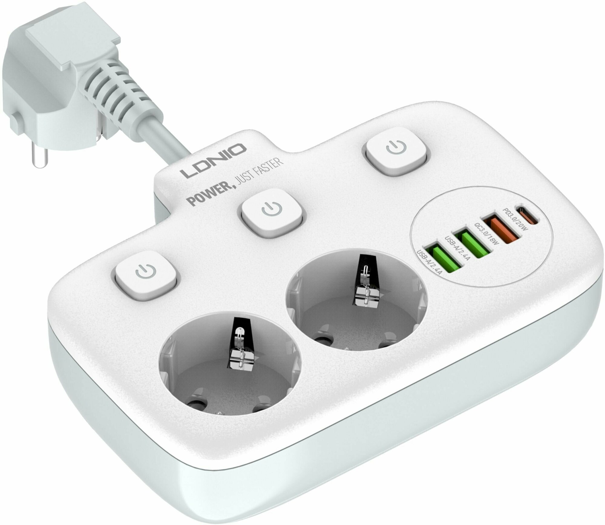 Сетевой фильтр LDNIO SE2435 Extension Lead with USB - 2 розетки, 2 USB, 1PD, QC3.0, EU, белый
