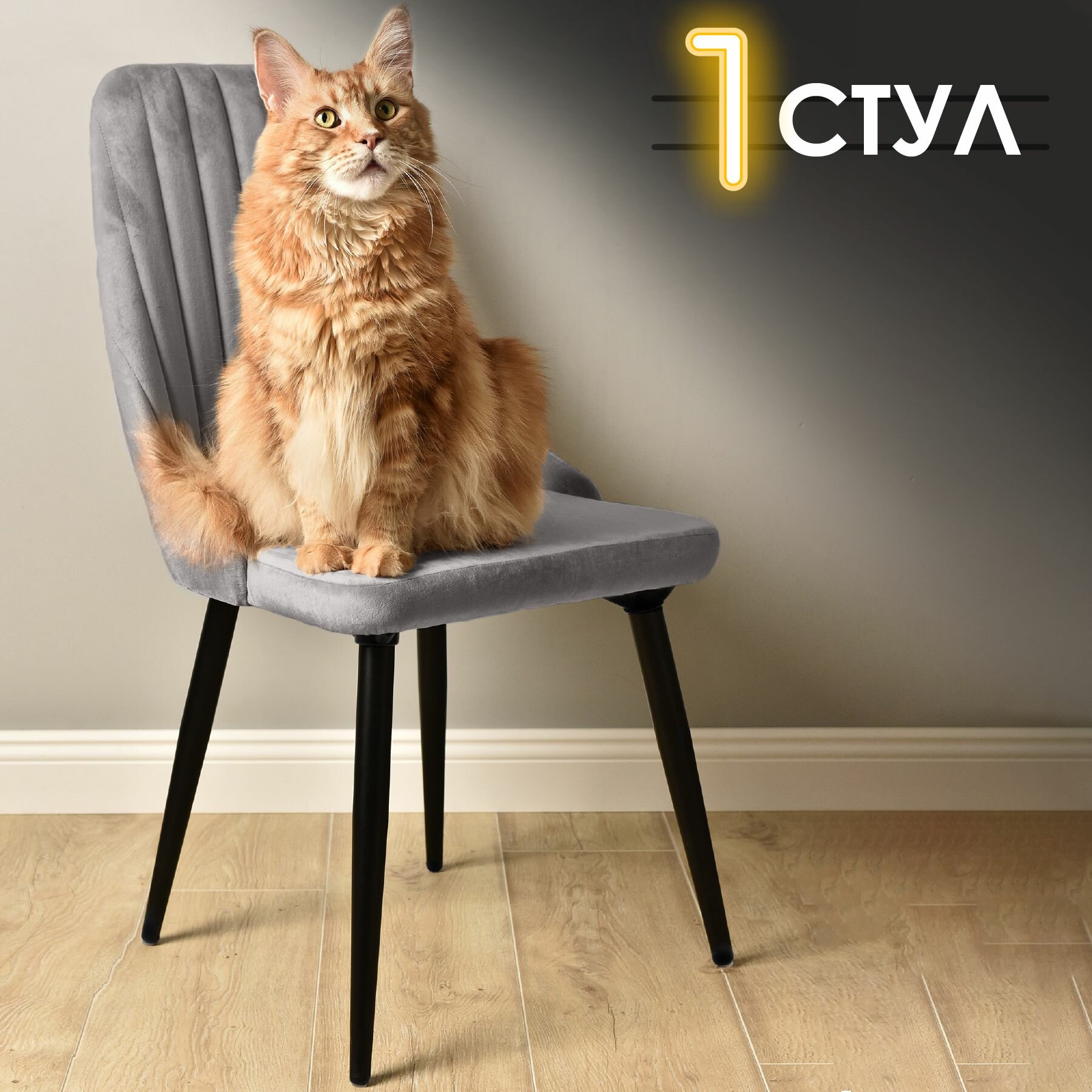 Стул Лондон мягкий со спинкой, обеденный, для кухни, гостиной, ножки дерево, серый вельвет, 1 шт , АМИ мебель, Беларусь