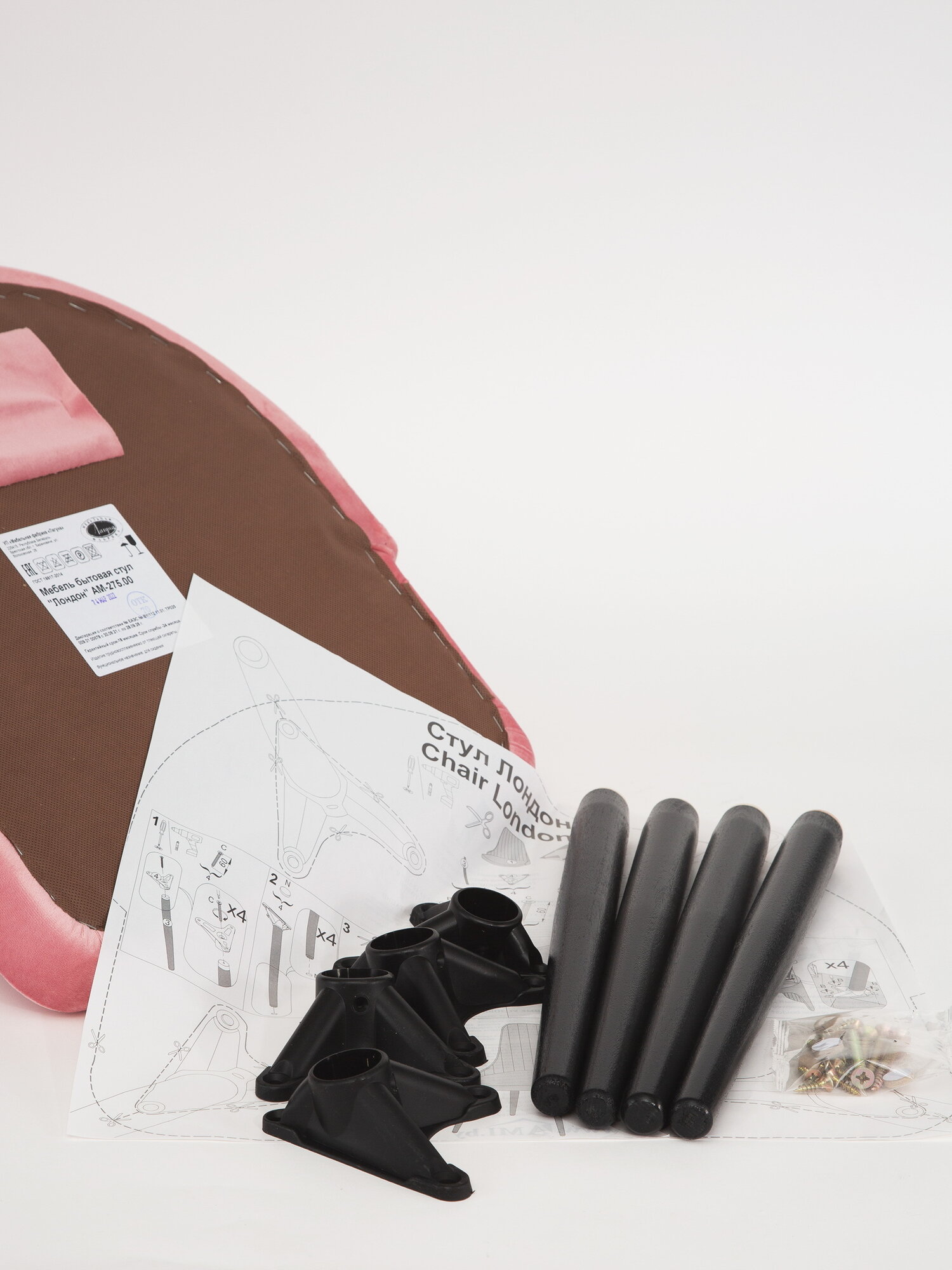 Стул Лондон мягкий со спинкой, обеденный, для кухни, гостиной, ножки дерево, розовый вельвет, 1 шт , АМИ мебель, Беларусь
