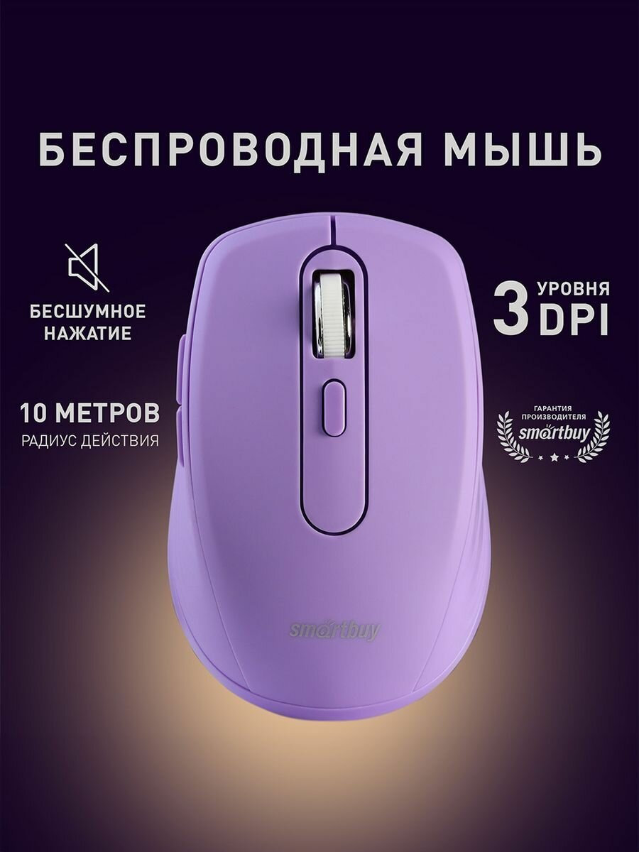 Мышь беспроводная SmartBuy 611AG беззвучная лиловая (SBM-611AG-V)