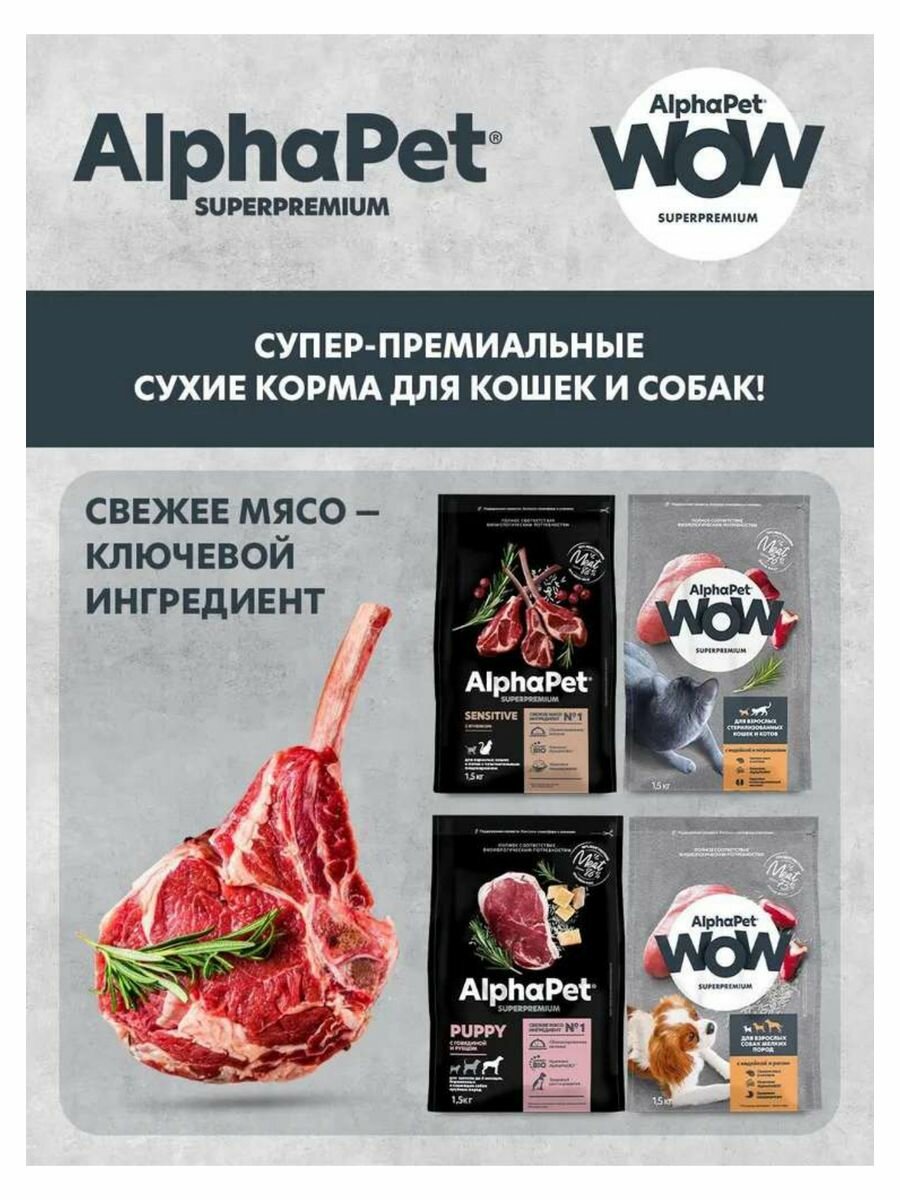 ALPHAPET WOW SUPERPREMIUM 1,5 кг сухой корм для взрослых домашних кошек и котов c говядиной и печенью