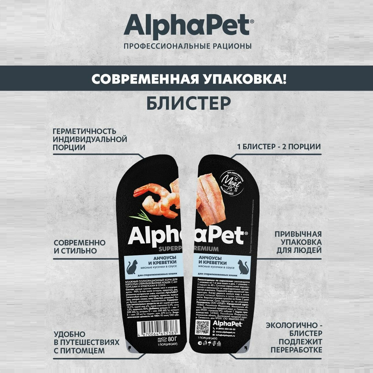 ALPHAPET SUPERPREMIUM 80 гр ламистер влажный корм для стерилизованных кошек анчоусы и креветки 30 шт