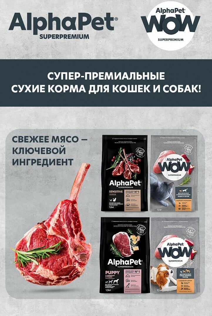 ALPHAPET WOW SUPERPREMIUM 1,5 кг сухой корм для взрослых домашних кошек и котов c говядиной и печенью