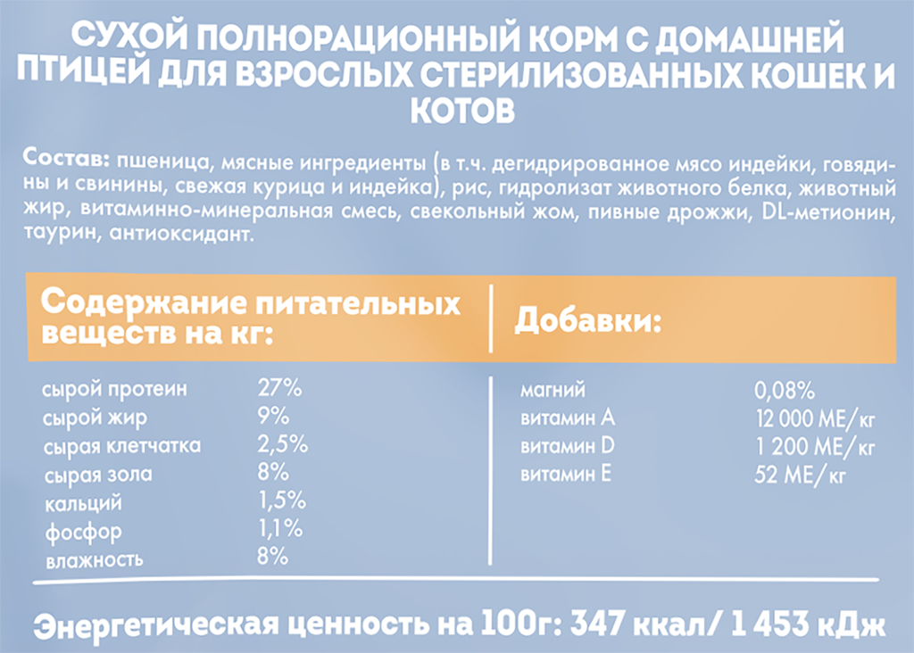 | Особые потребности | для стерилизованных/кастрированных |