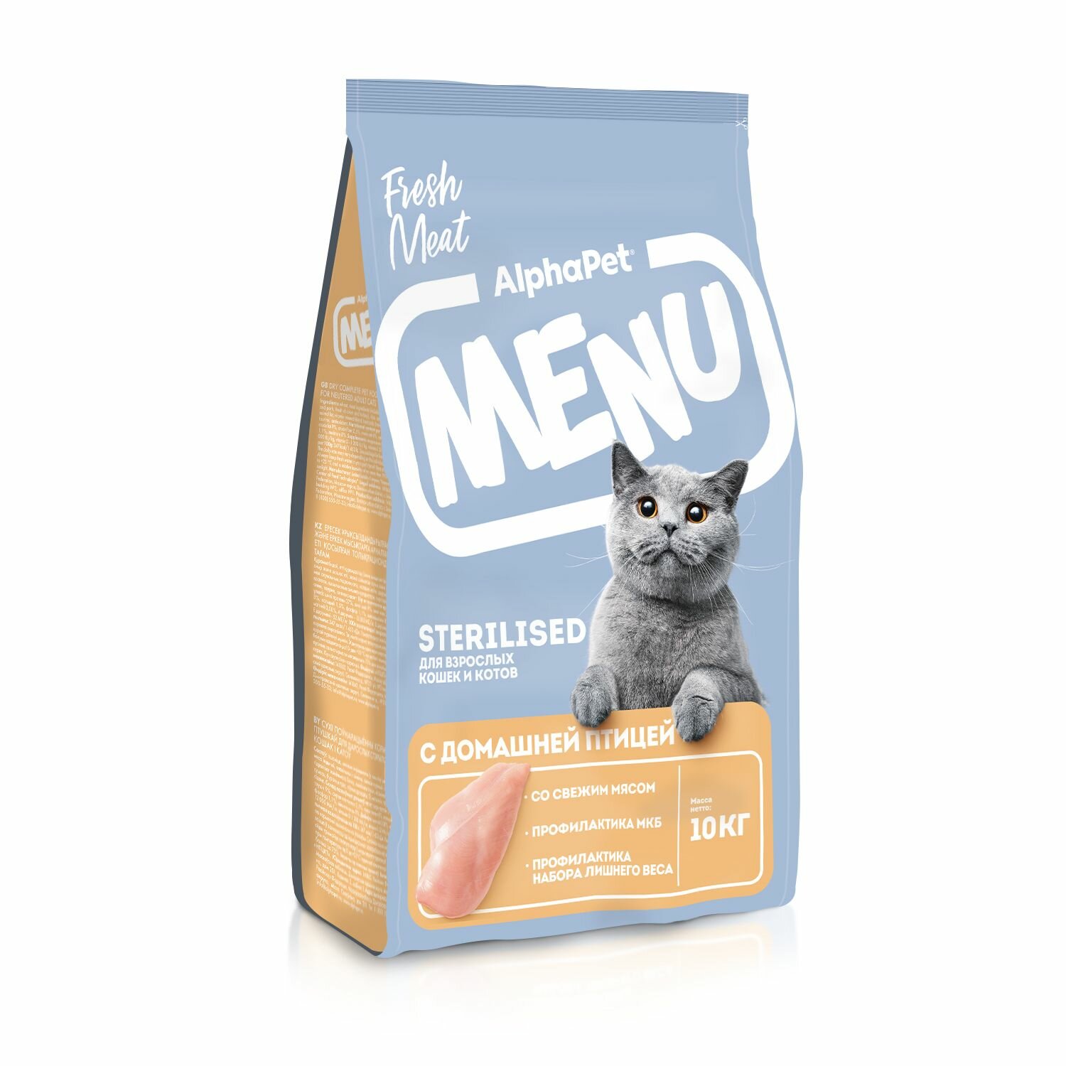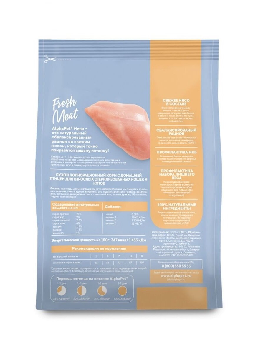 Купить AlphaPet Menu Сухой корм для стерилизованных кошек и котов, Домашняя птица 10кг