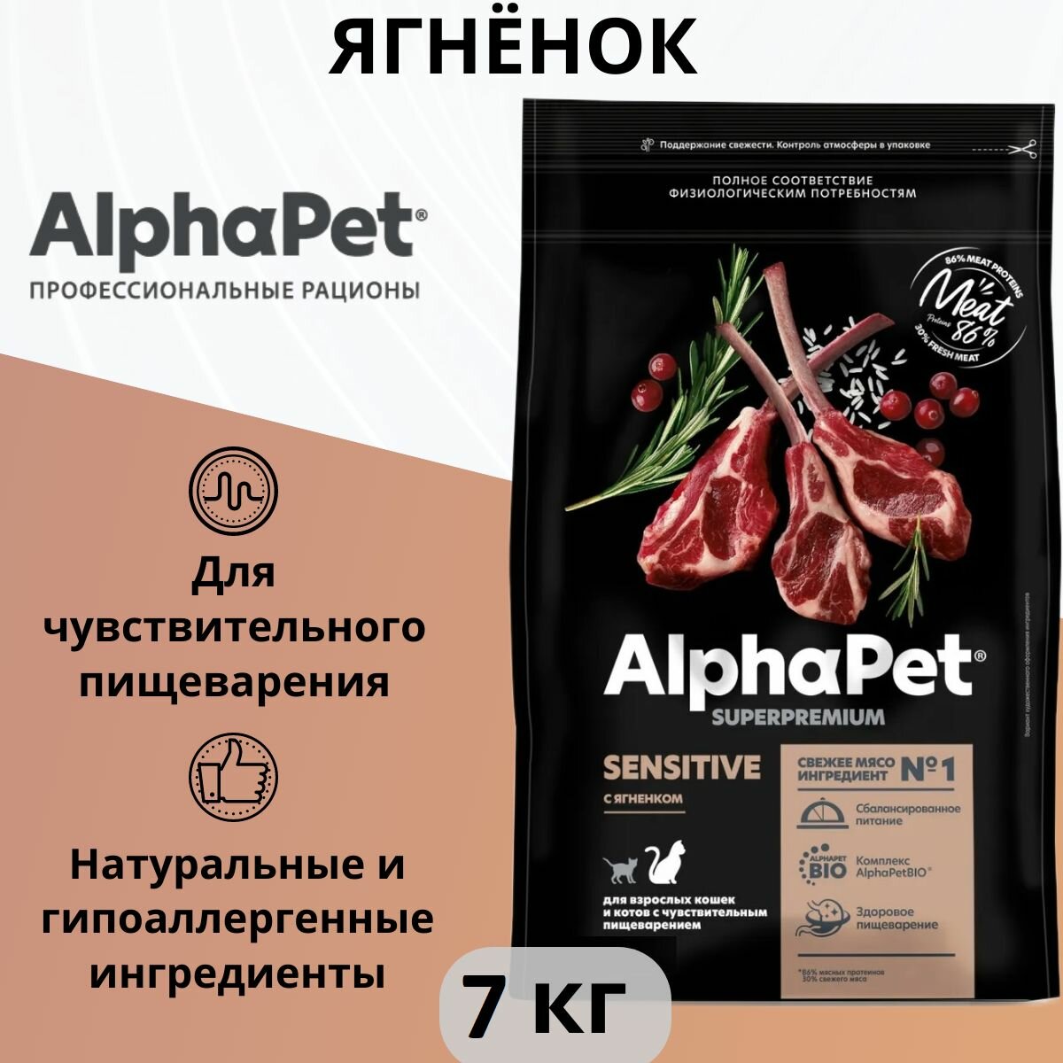 Купить ALPHAPET SUPERPREMIUM 7 кг сухой корм для взрослых домашних кошек и котов с чувс. пищ. с ягненком