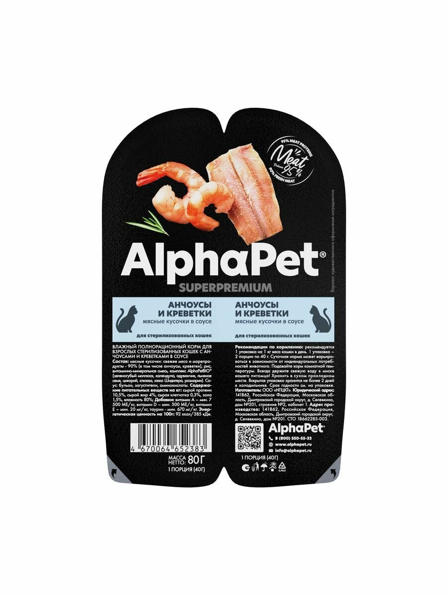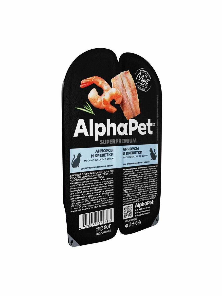 ALPHAPET SUPERPREMIUM 80 гр ламистер влажный корм для стерилизованных кошек анчоусы и креветки 30 шт