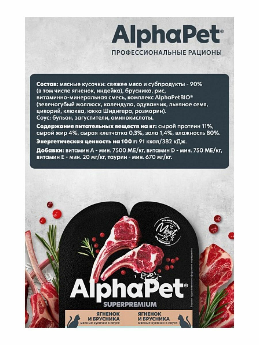 Купить Влажный корм АльфаПет ягненок и брусника в соусе для кошек 80гр.*15 шт.