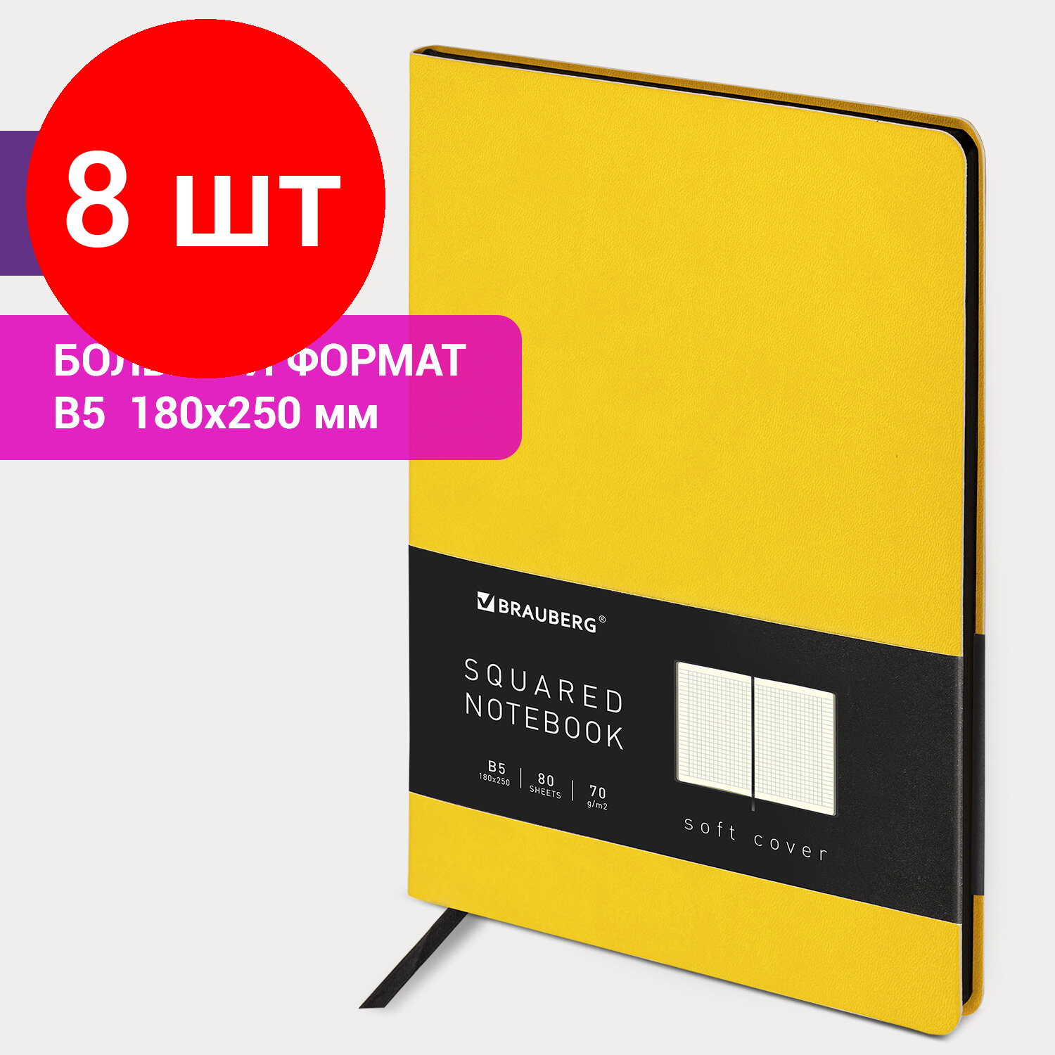Купить Комплект 8 шт, Блокнот большой формат 180х250мм B5, BRAUBERG Metropolis Mix под кожу 80л, клетка, желтый, 113311