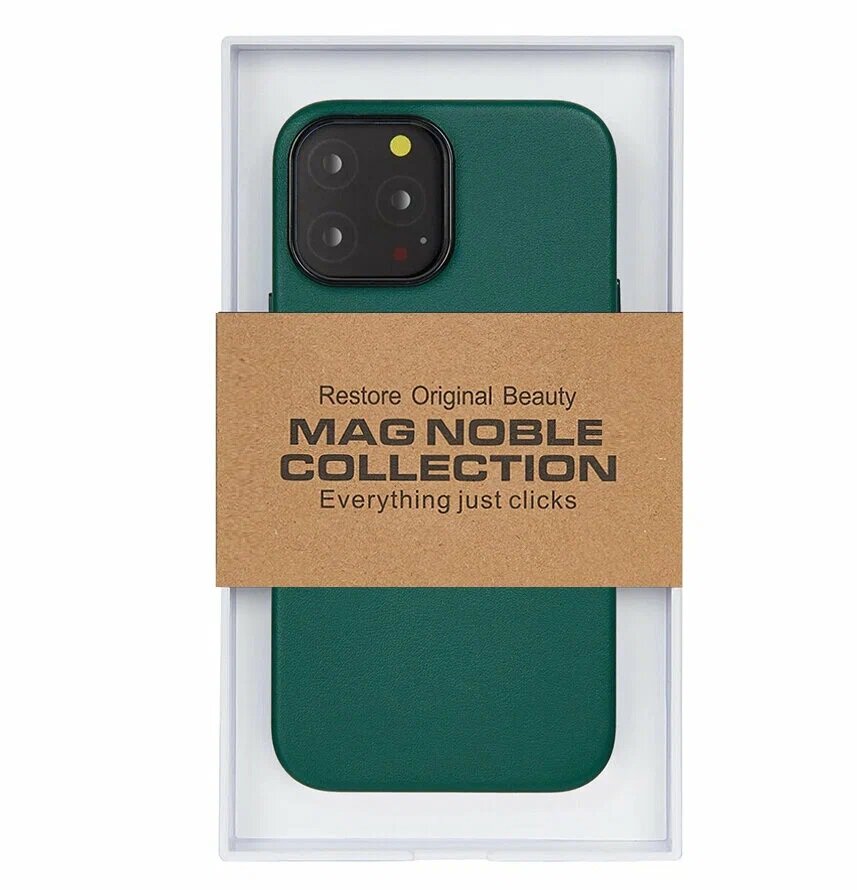 Чехол с MagSafe для iPhone 14 Pro Max MAG NOBLE COLLECTION кожаный Soft touch — Зелёный