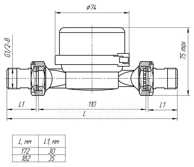 Счётчик холодной воды Бетар СХВ-15 без монтажного комплекта, L110, Ду15