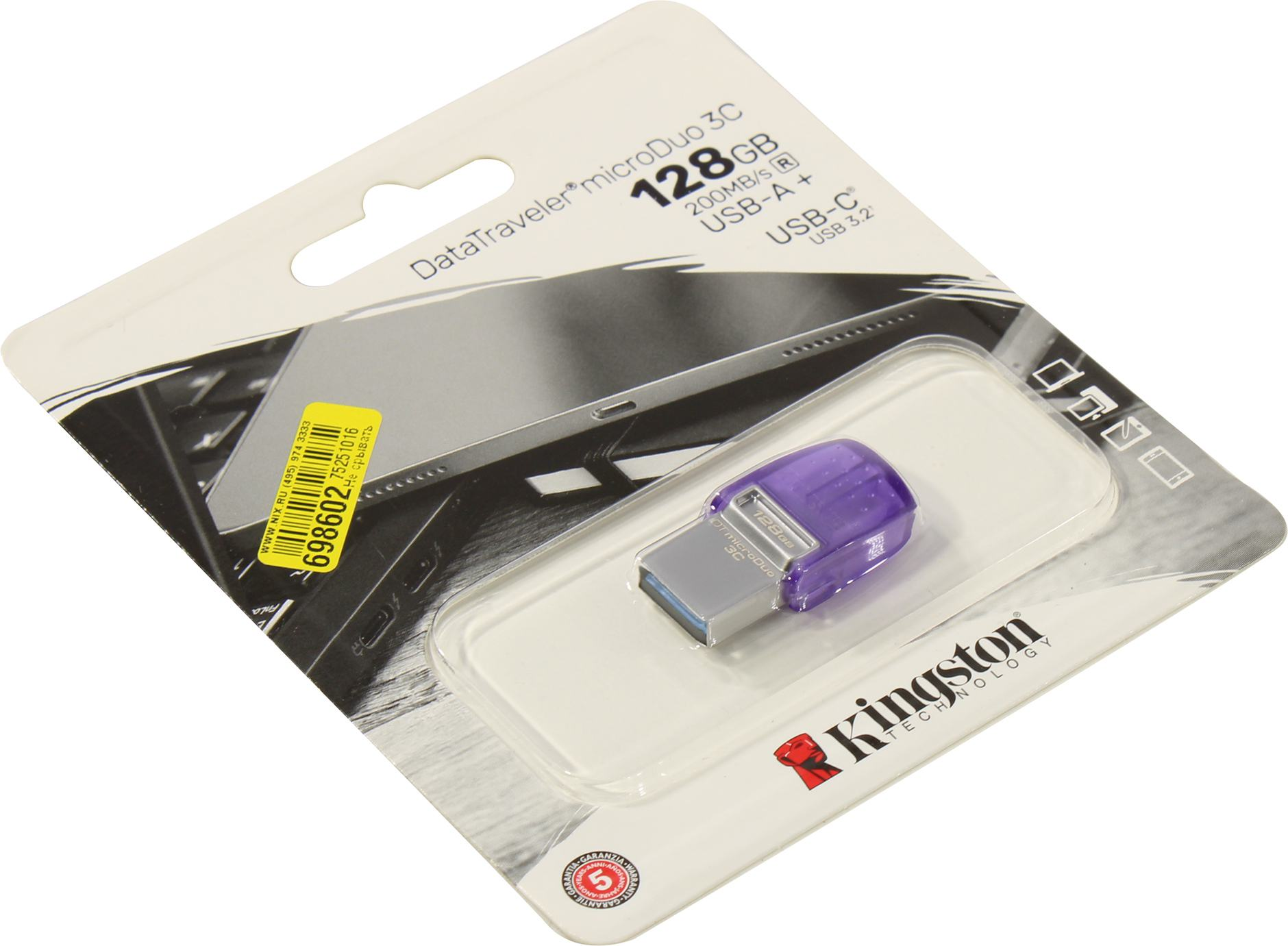 USB-накопитель Kingston DataTraveler microDuo 3C G3 128GB USB 3.2 Gen 1 Purple