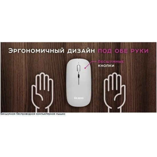 Мышь Olmio WM-21 беспроводная тихая с подсветкой белая 043977