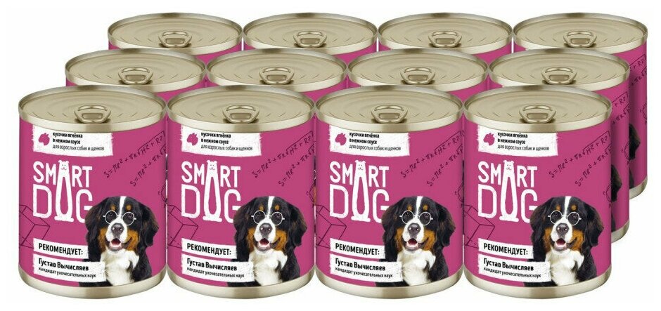 Smart Dog консервы Консервы для взрослых собак и щенков кусочки ягненка в нежном соусе 22ел16 43736 0,85 кг 43736 (2 шт)