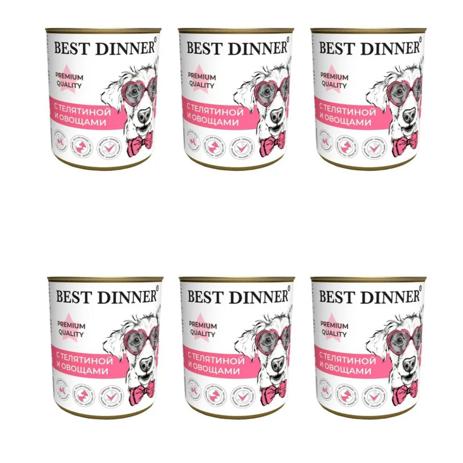 BEST DINNER Меню №4 консервы для собак и щенков 6+, телятина с овощами в желе, 340 гр, 6 шт