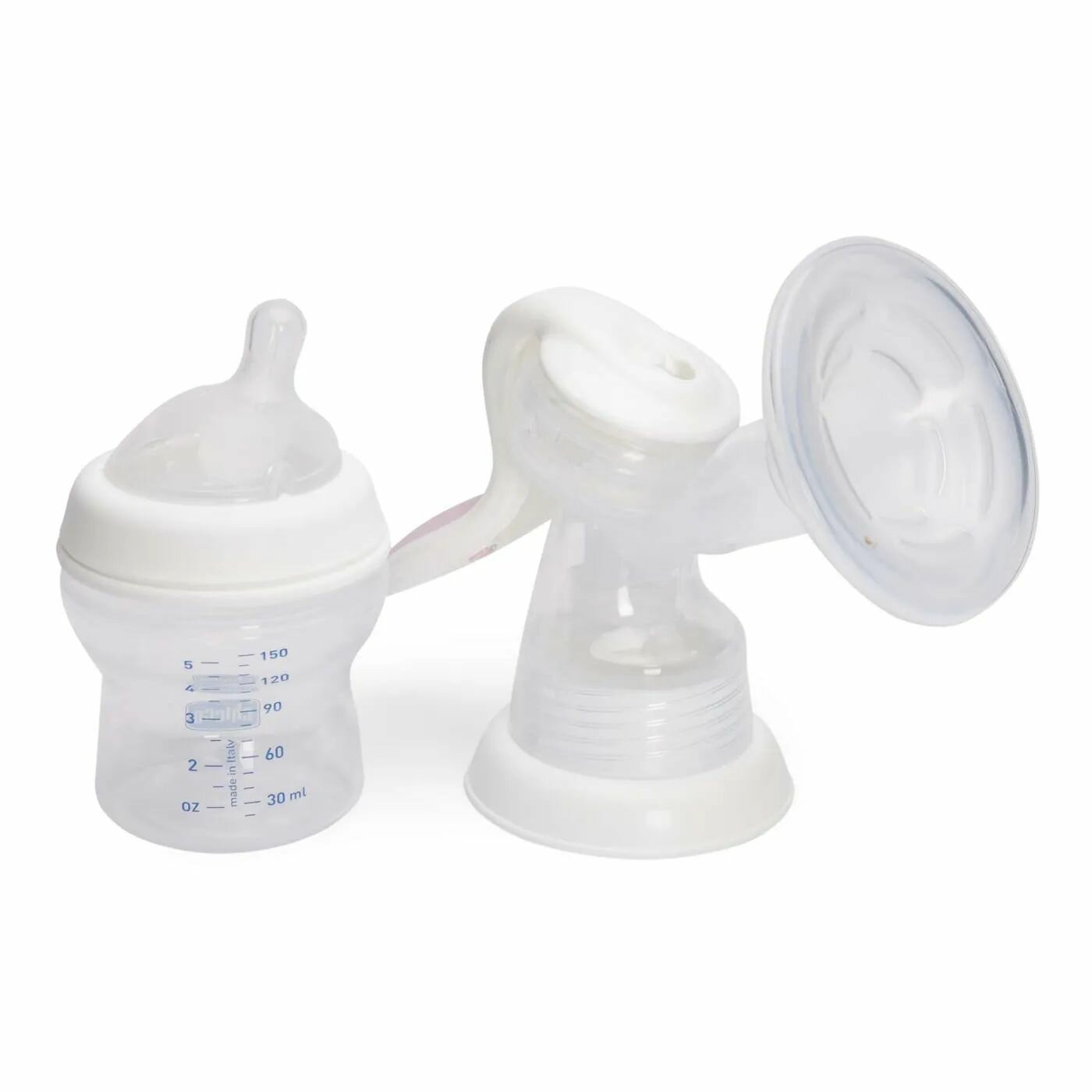 Молокоотсос ручной механический с бутылочкой для кормления ШГ и соской, 150 мл., цвет белый