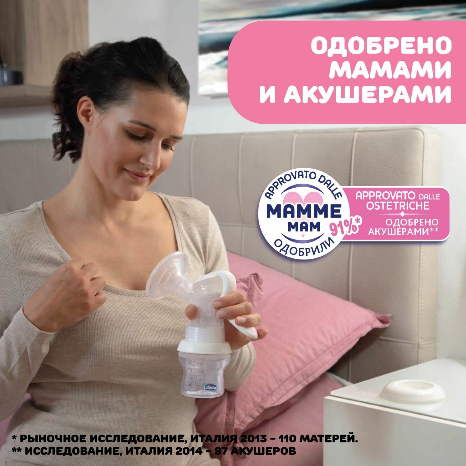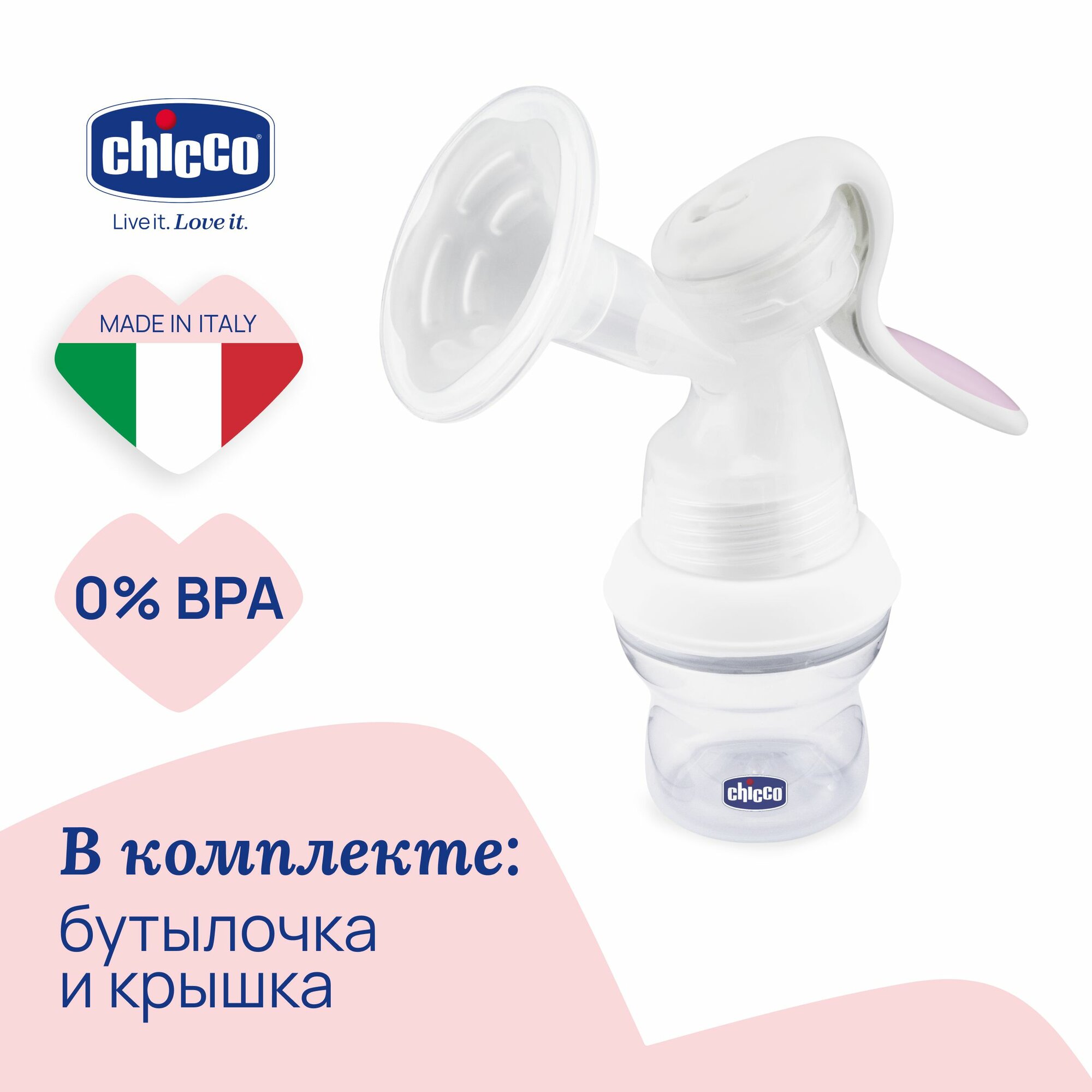 Купить Молокоотсос ручной Chicco Natural Feeling механический бесшумный с бутылочкой 150 мл и силиконовой накладкой