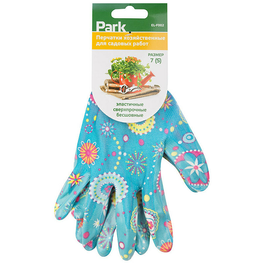 Купить Перчатки хозяйственные PARK EL-F002, размер 7 (S), нитрил+полиэстер, с цветным рисунком (001362)