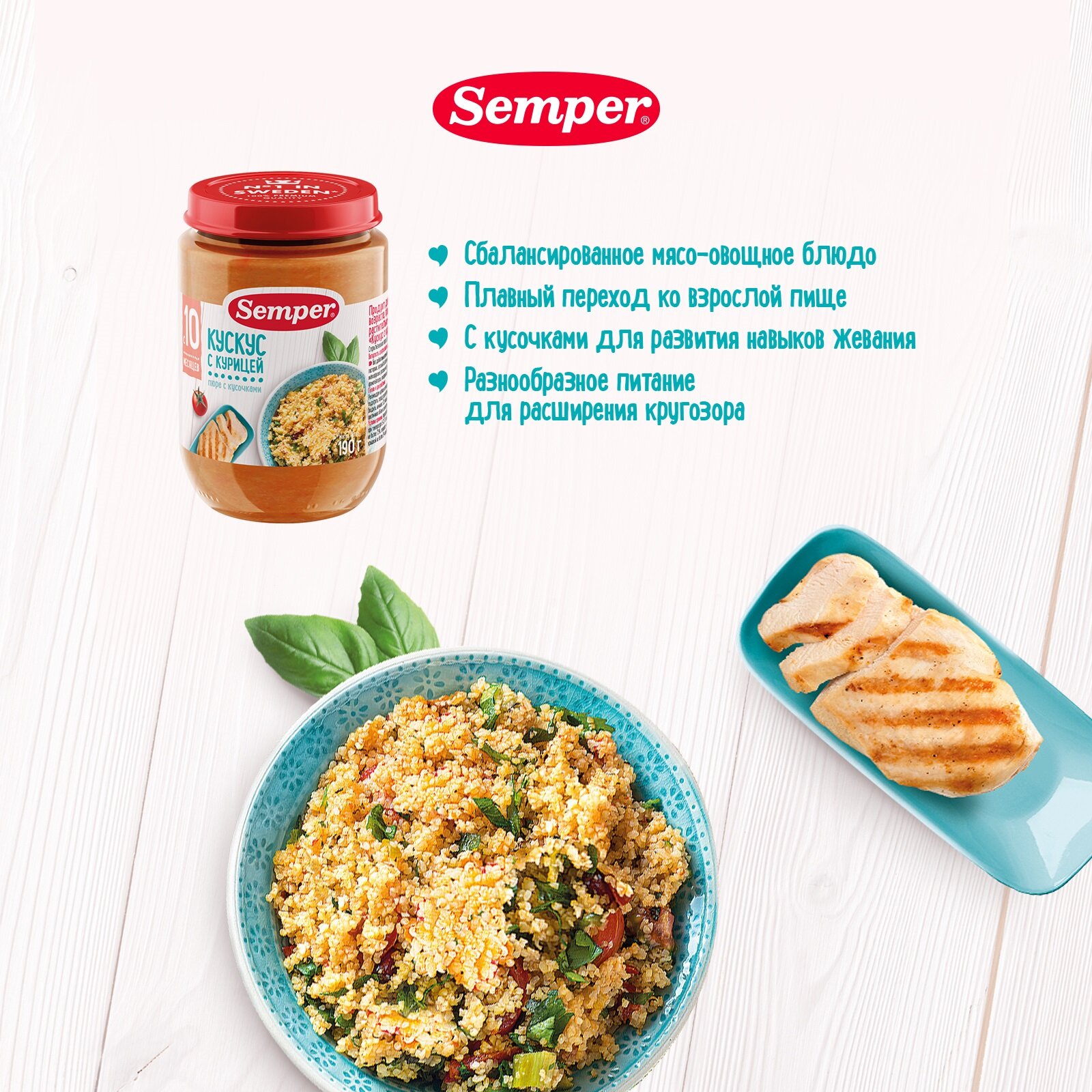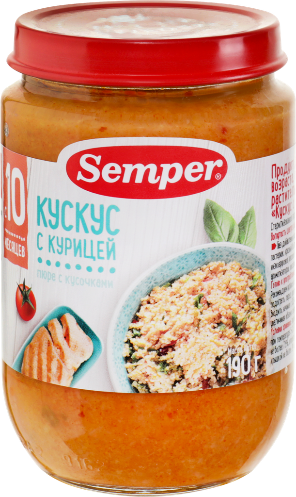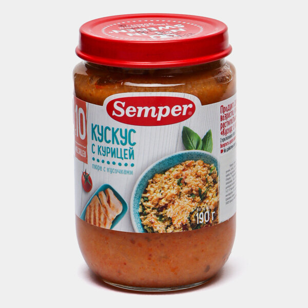 Пюре мясо-растительное SEMPER Кускус с курицей, с 10 месяцев, 190г интересное: