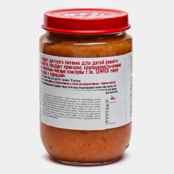 Ниже Вы можете прочитать отзывы на Пюре мясо-растительное SEMPER Кускус с курицей, с 10 месяцев, 190г, ознакомится с подробными характеристиками, посмотреть интересные обзоры и фотографии на Пюре мясо-растительное SEMPER Кускус с курицей, с 10 месяцев, 190г.