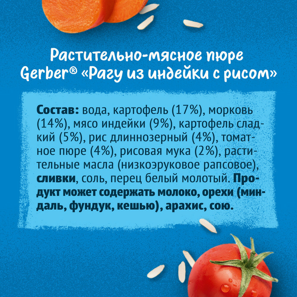 Пюре мясо-растительное GERBER Рагу из индейки с рисом, с 12 месяцев, 190г