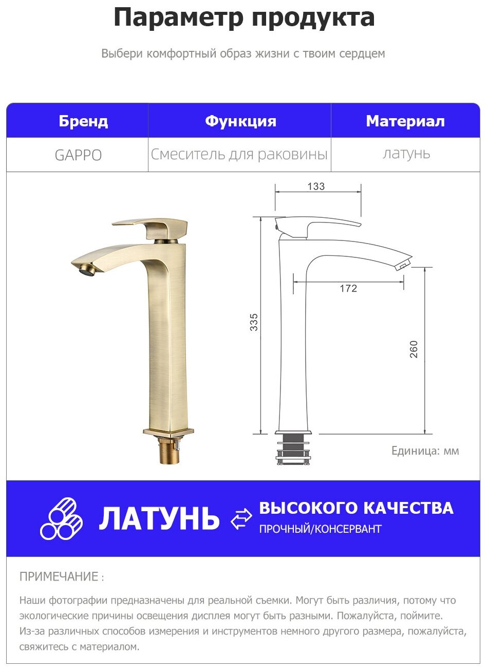 G1007-42 Смеситель раковина шаровый, высокий, бронза интересное: