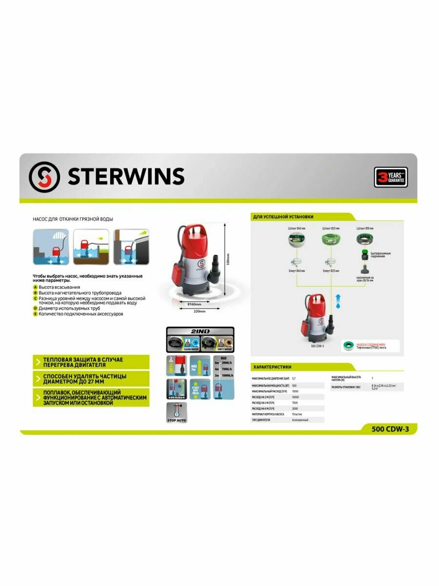 Дренажный насос STERWINS CDW-3 (500 Вт)