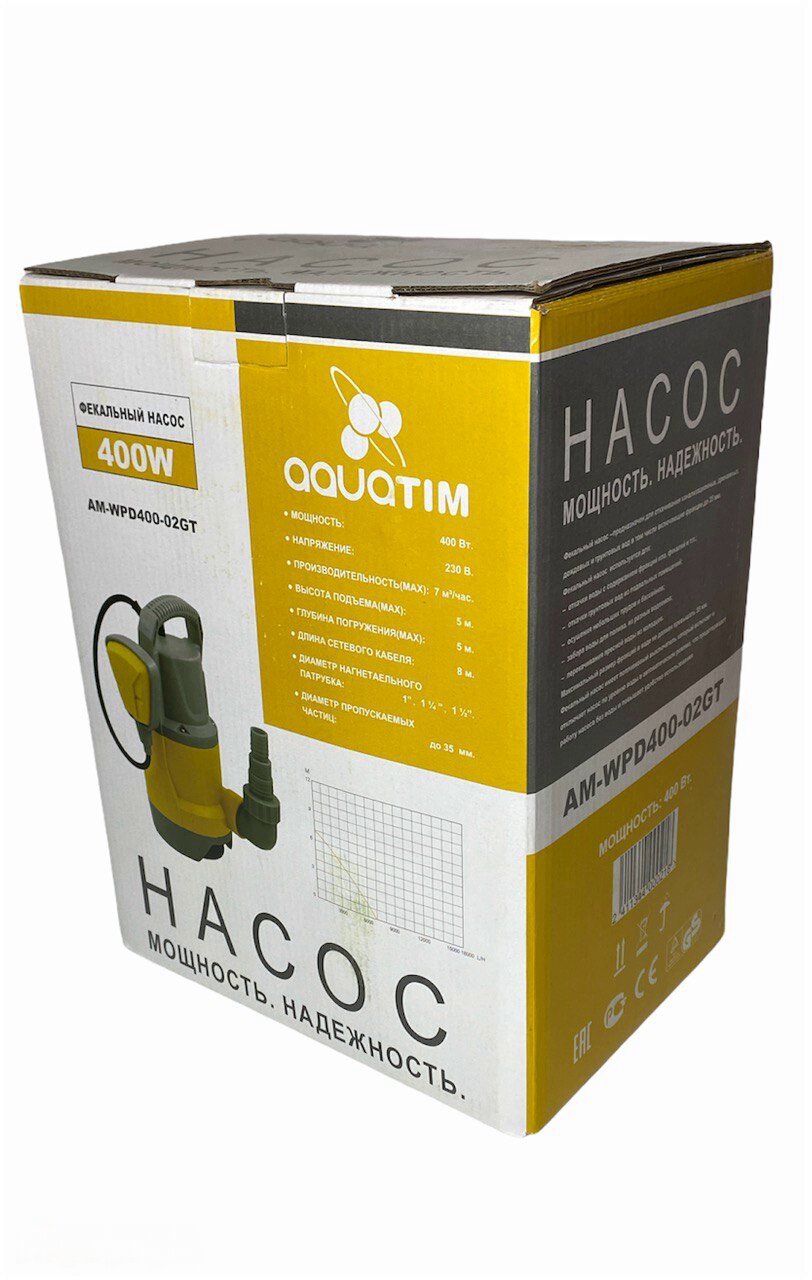 Купить Фекальный насос 400 Вт / кабель 8 м /высота подъема 7 метров (корпус пластик) AQUATIM арт. AM-WPD400-02GT