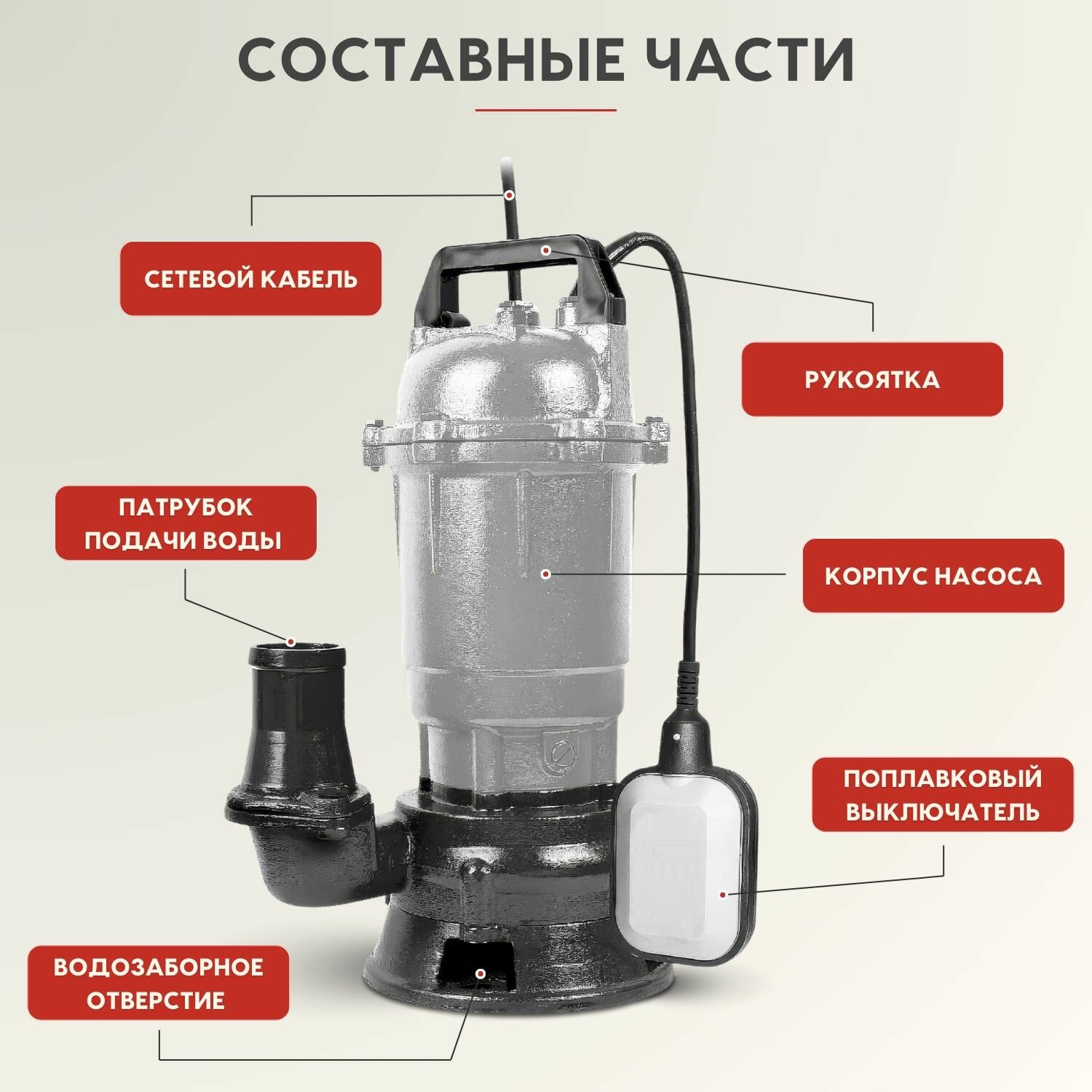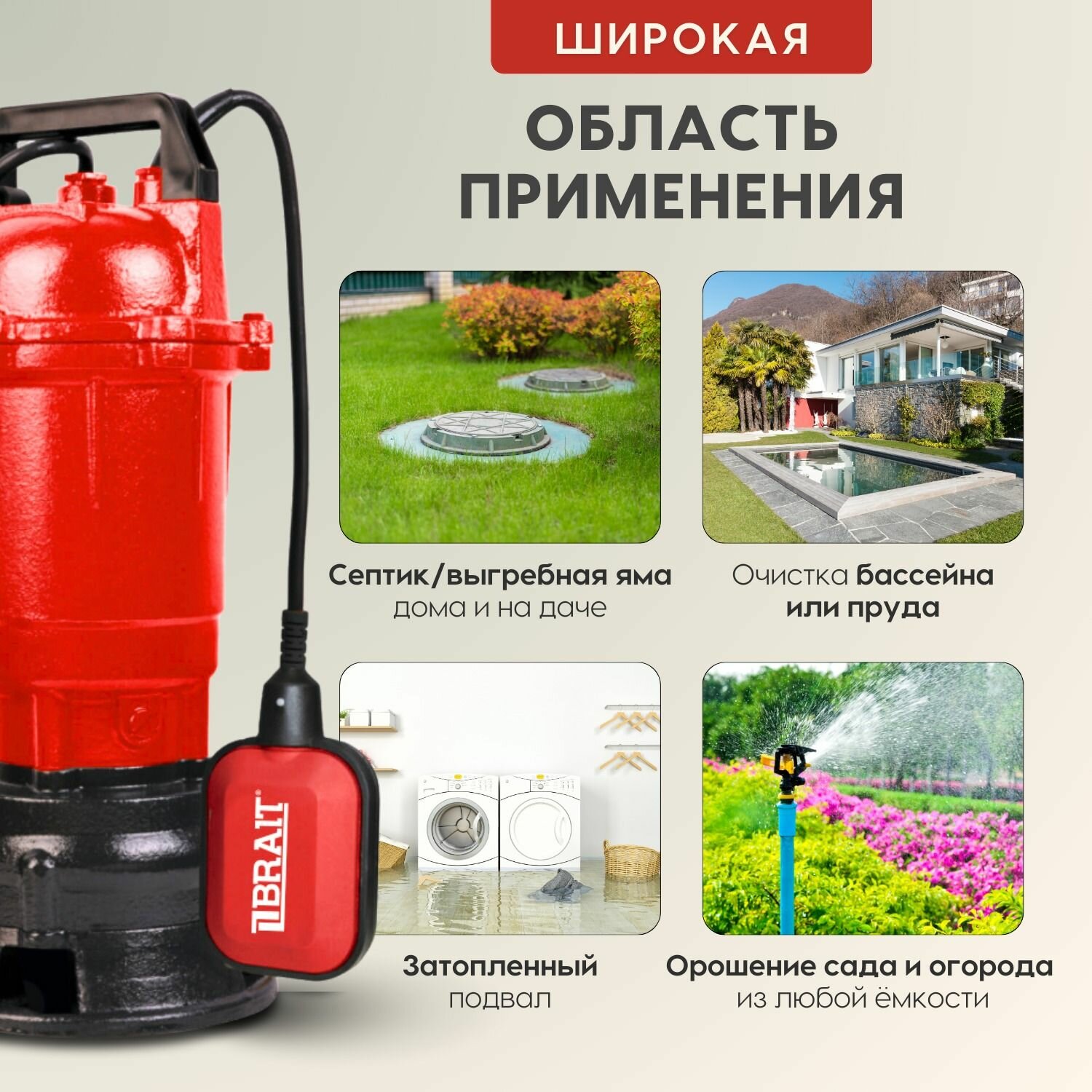 Насос Brait дренажный погружной NPD- 750D для грязной воды 198 л/мин, 750Вт, 35 мм, для грязной воды