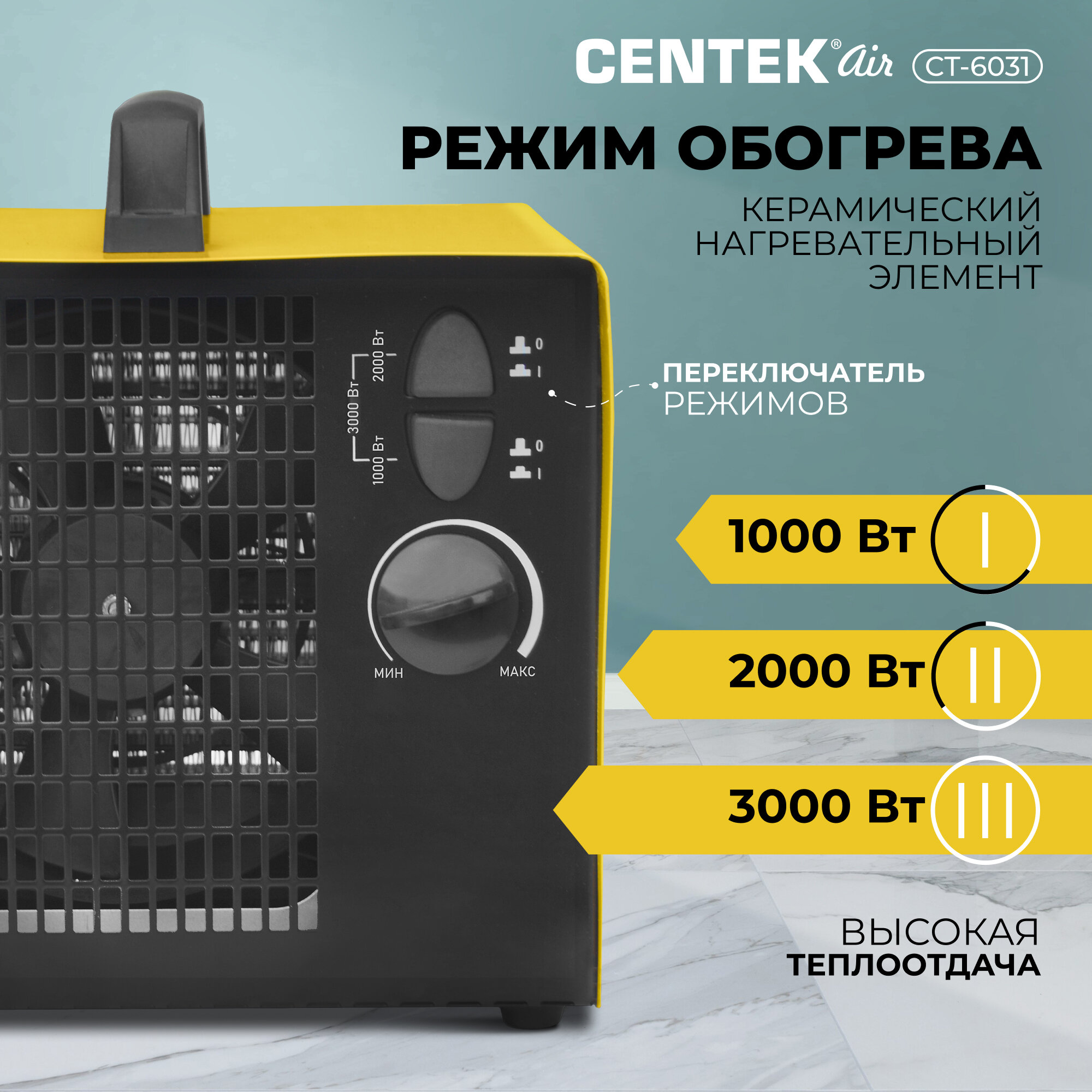 Ниже Вы можете прочитать отзывы на Тепловентилятор электрический Centek CT-6031/3000Вт/3 режима работы/защита от перегрева/35м3, ознакомится с подробными характеристиками, посмотреть интересные обзоры и фотографии на Тепловентилятор электрический Centek CT-6031/3000Вт/3 режима работы/защита от перегрева/35м3.