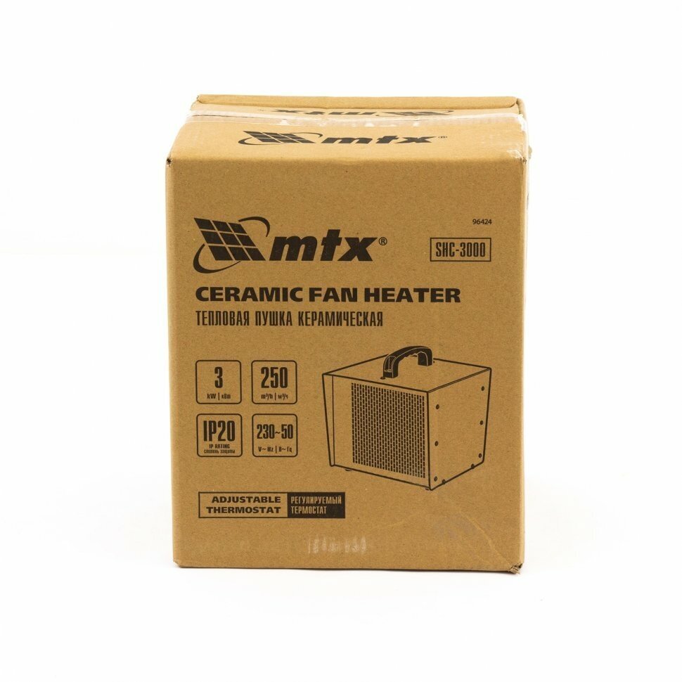 Купить Тепловая пушка керамическая MTX SHC-3000 квадратная, 230 В, 250 м3/ч, 1, 5/3 кВт 96424