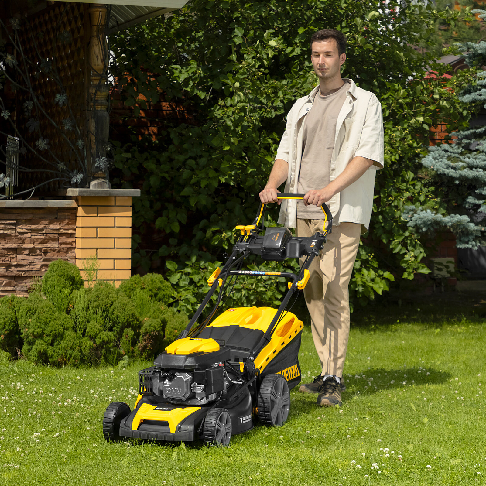 | Дополнительные функции | возможность установки мульчирующей насадки / регулировка высоты скашивания |