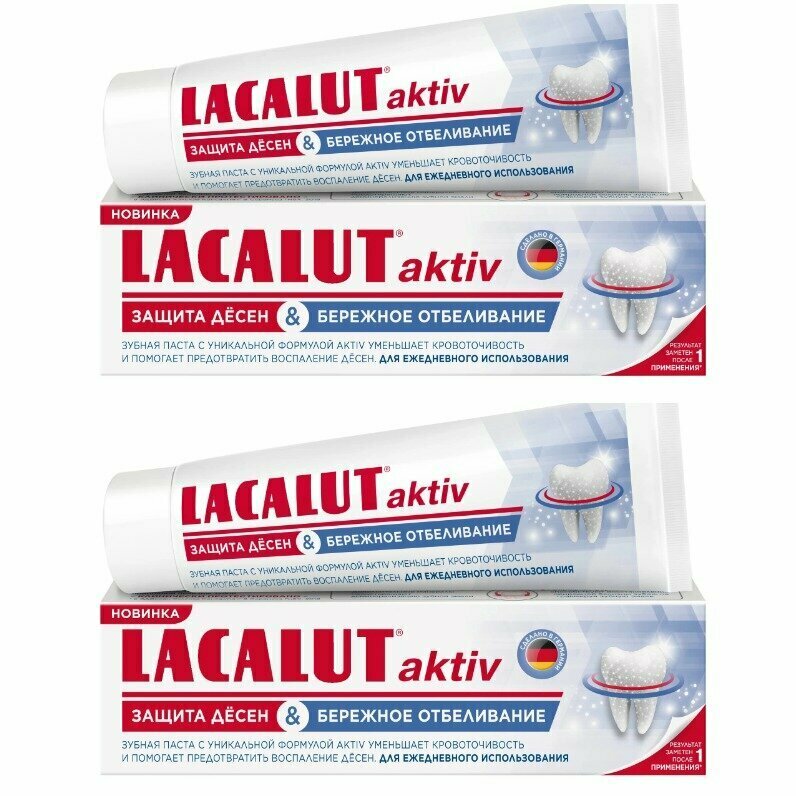 Зубная паста Lacalut Aktiv, защита десен и укрепление эмали, 75 мл, 2 штуки в упаковке