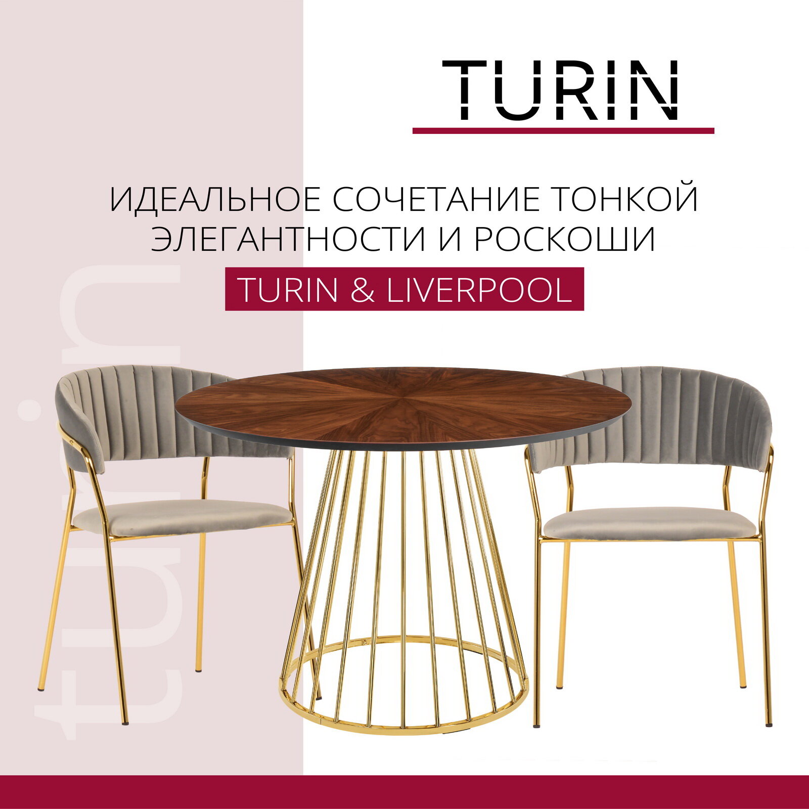 Стул Turin винный с золотыми ножками