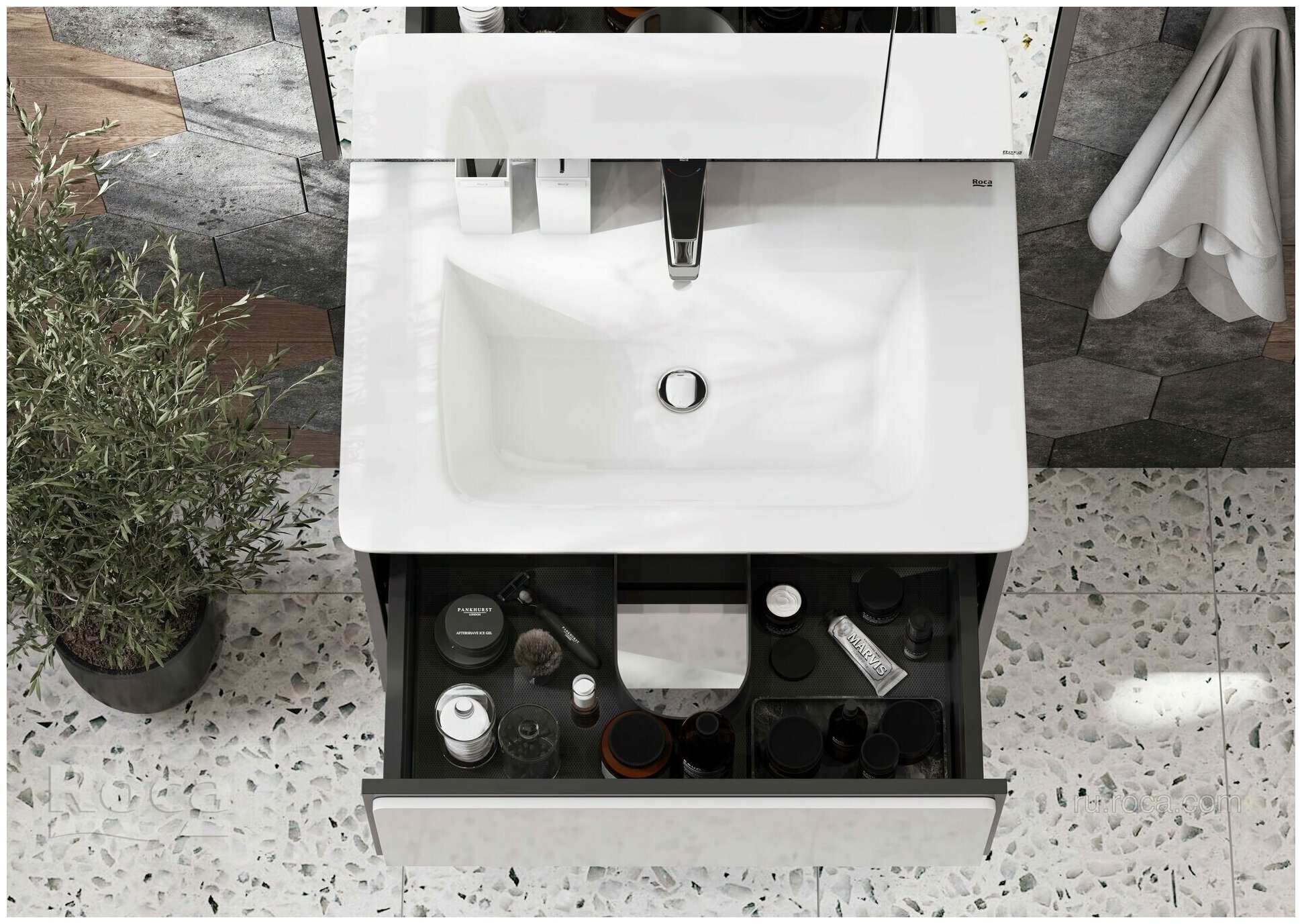 Тумба с раковиной Roca Ronda 70 антрацит/белый глянец (ZRU9302964, 327471000) интересное: