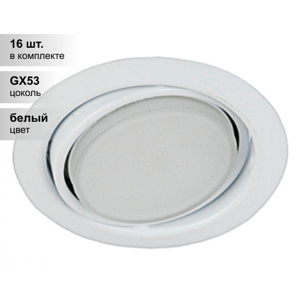 Сохранить(16 шт.) Светильник точечный поворотный ЭРА KL35 А WH /1 для ламп с цоколем GX53 макс. 15 Вт, питание 220 В, цвет белый интересное: