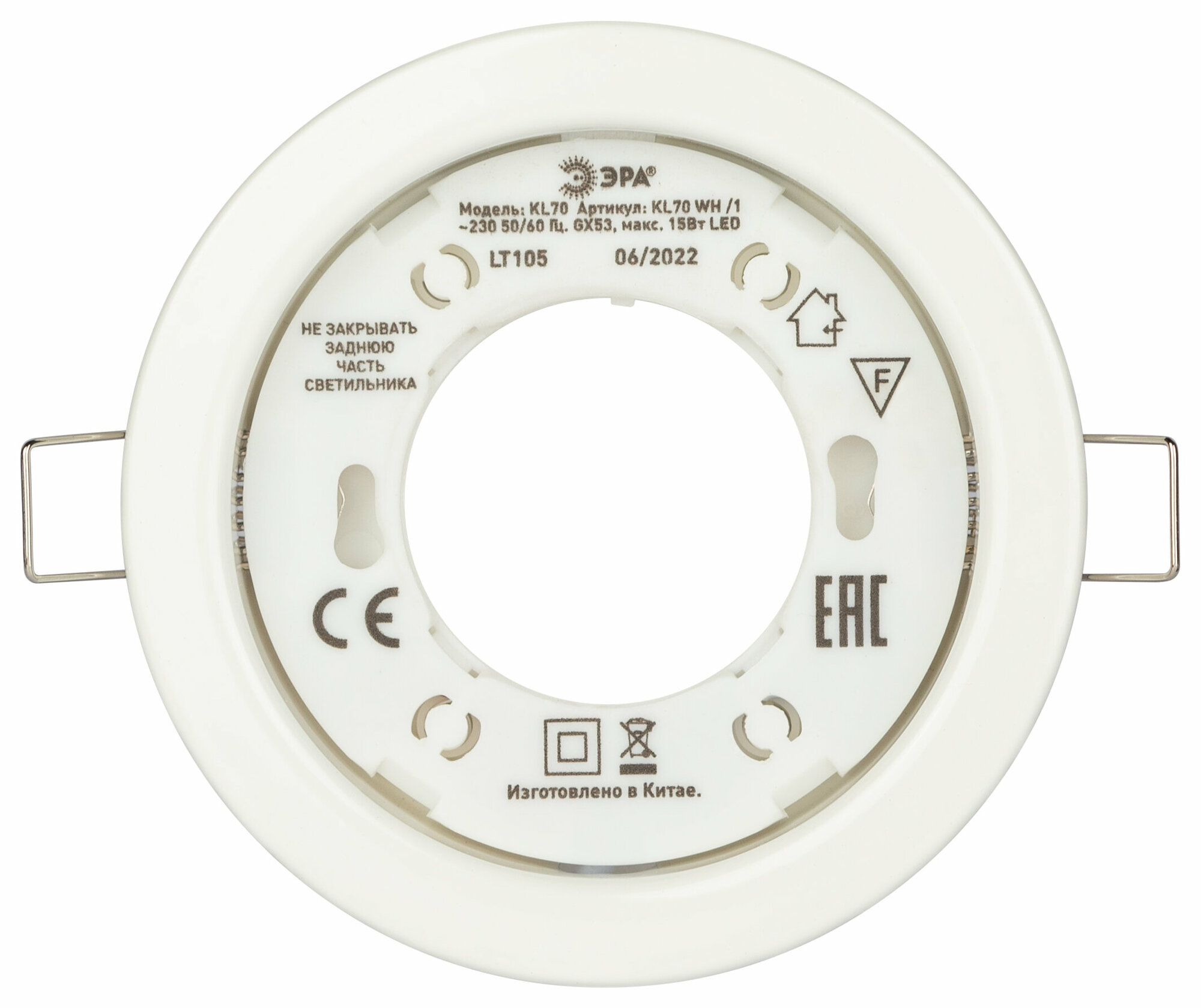 ЭРА KL70 WH /1 Светильник ЭРА под лампу Gx53 тонкий , 220V, 13W, белый (40/2200)