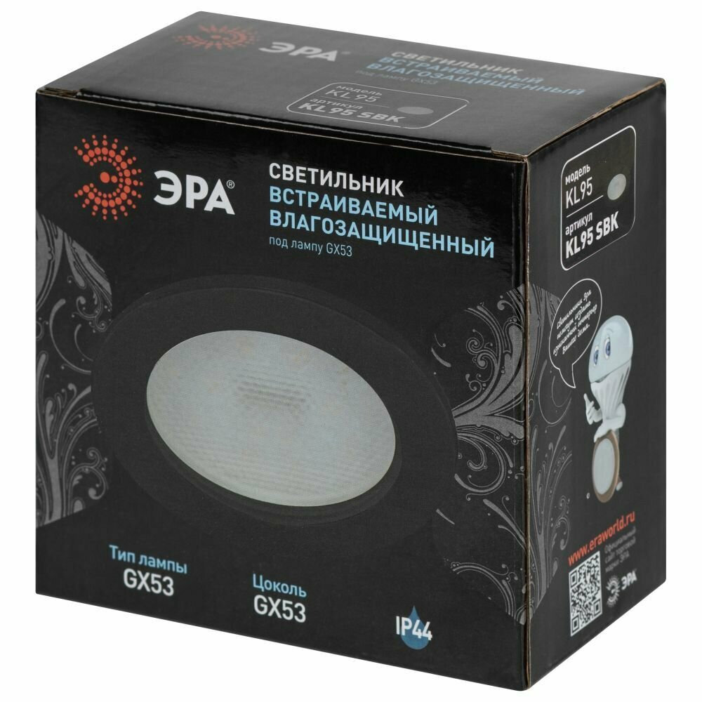 Светильник KL95 SBK под лампу GX53 IP44 влагозащищенный встраиваемый черн. Эра Б0055812