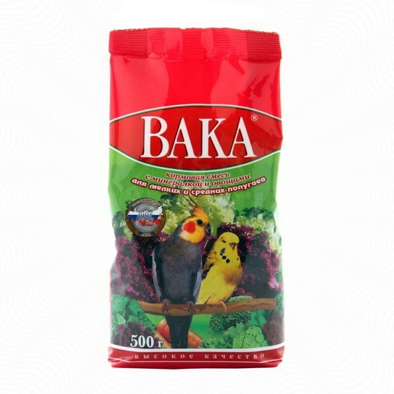 Вака высокое качество корм для маленьких и средних попугаев с минералами и овощами (500 гр)
