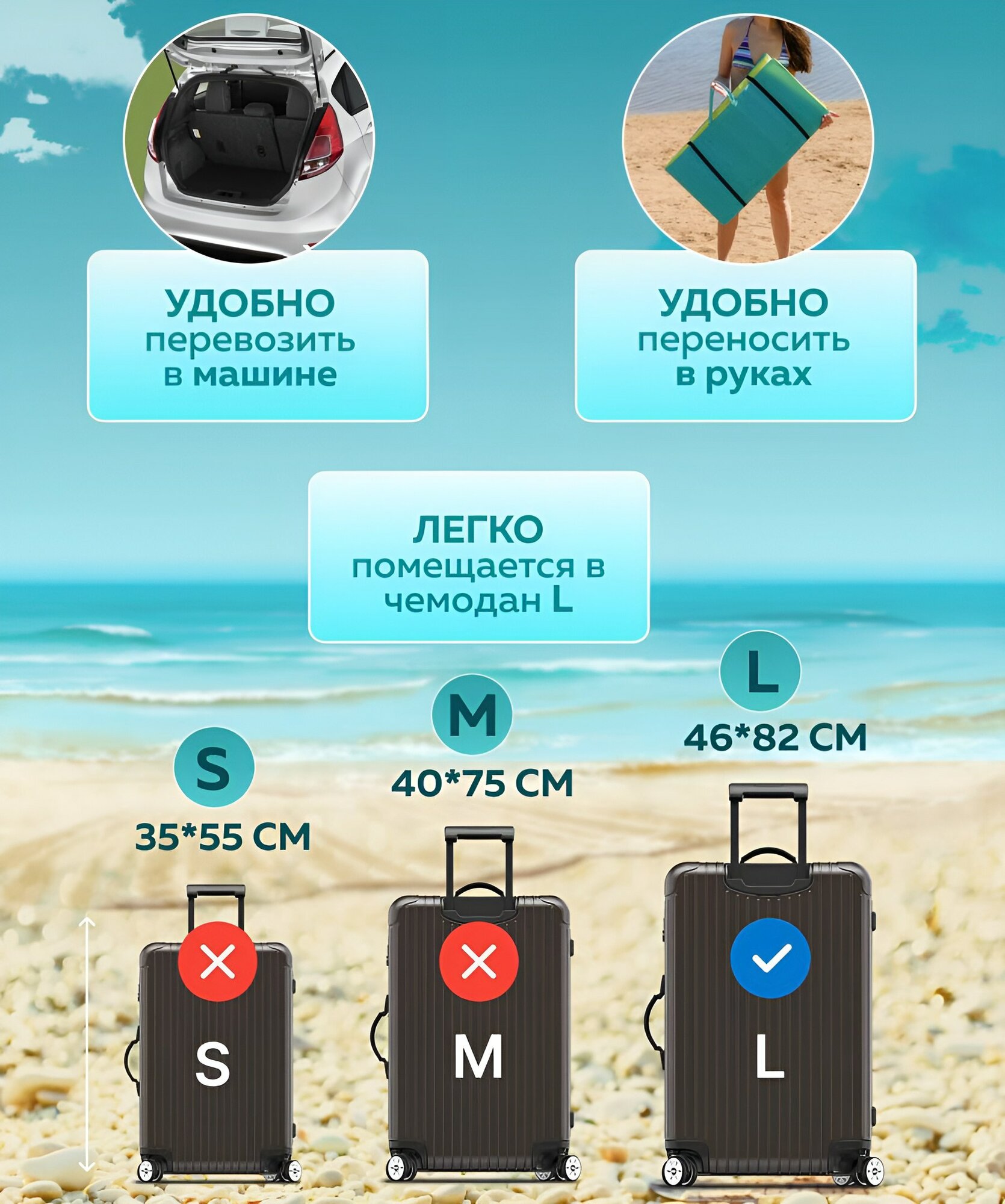 Купить Туристический коврик складной 160*125*1 см, пляжный коврик для гальки, термоковрик Бирюза