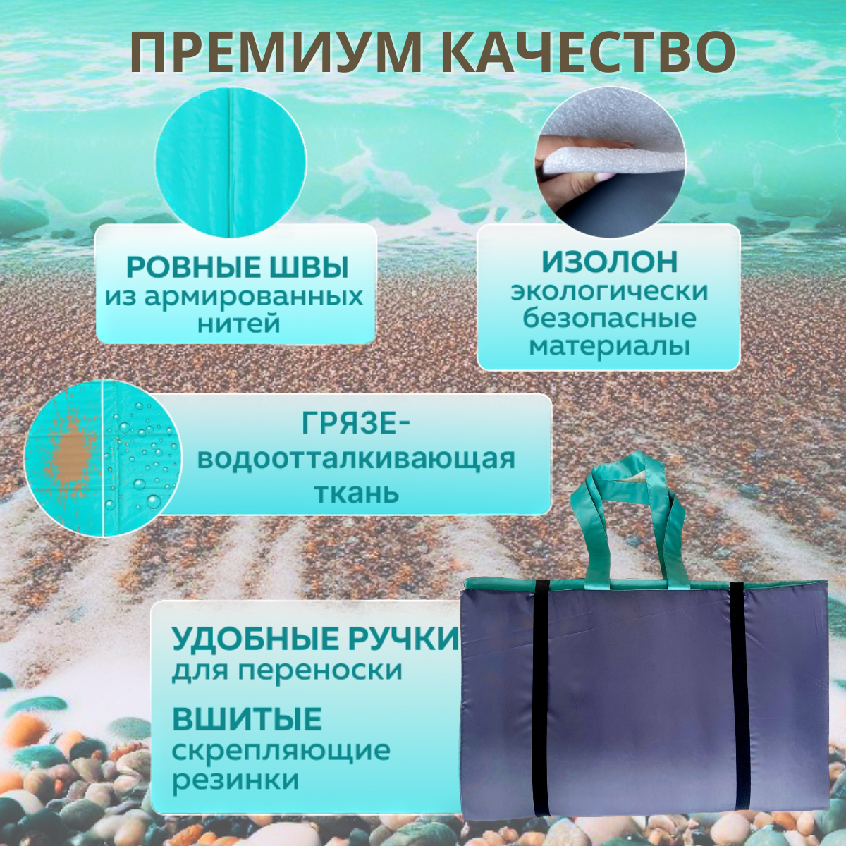 Купить Коврик пляжный складной 125*160 см для гальки и песка Бирюза/серый