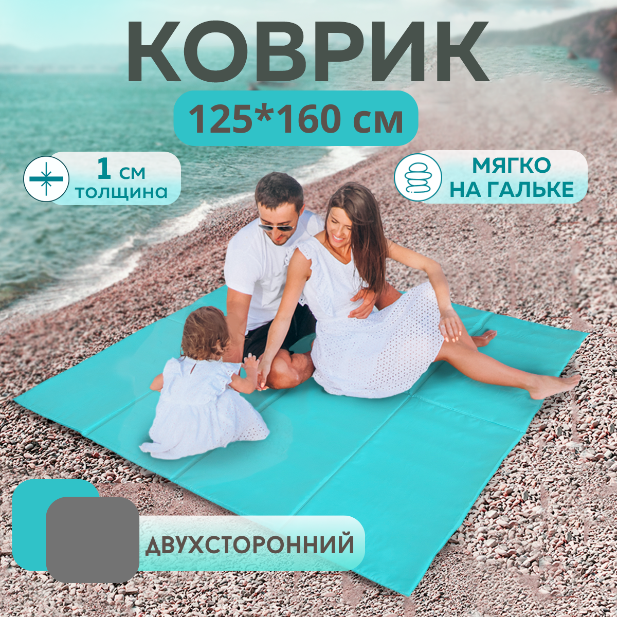 Туристический коврик складной 160*125*1 см, пляжный коврик для гальки, термоковрик Бирюза