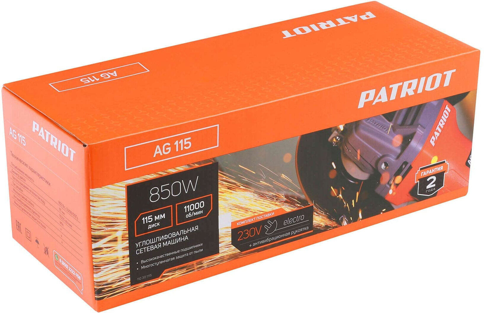 Шлифмашина угловая PATRIOT AG 115 (110301115) 850 Вт, 115 мм, 11000 об/мин